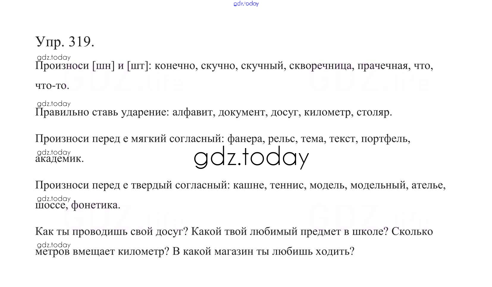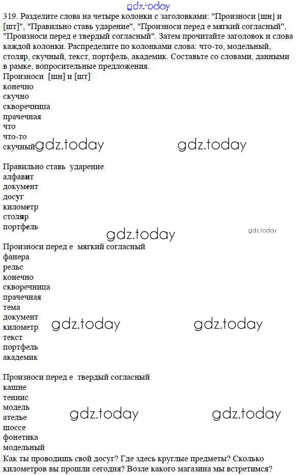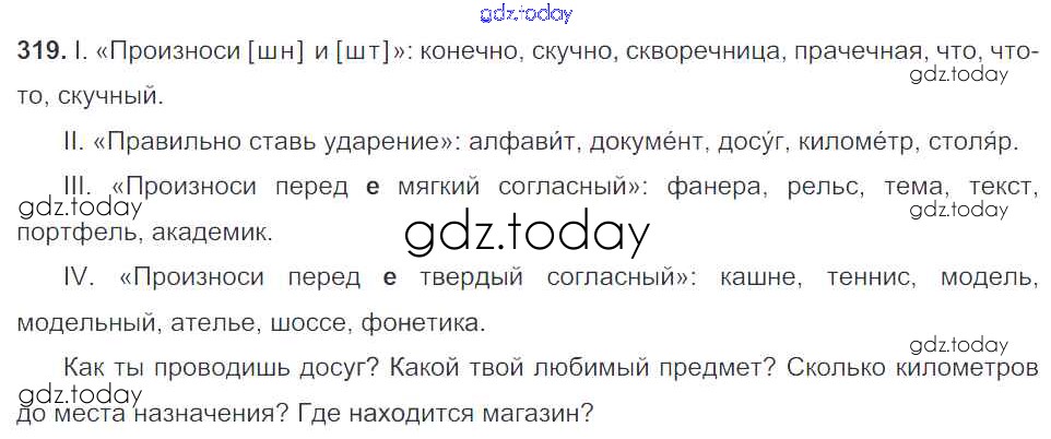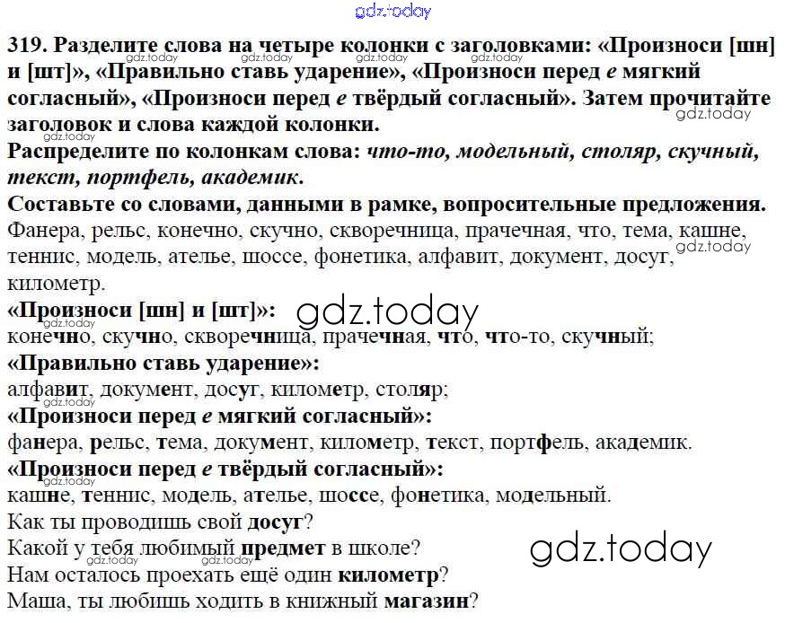 Ответы к Часть 1. Решение к упражнениям 319 Учебнику по Русскому языку для 5 класса Баранов, Ладыженская Просвещение, Просвещение 2016, 2019