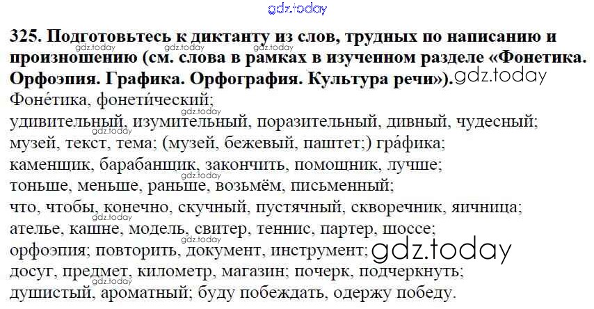 Ответы к Часть 1. Решение к упражнениям 325 Учебнику по Русскому языку для 5 класса Баранов, Ладыженская Просвещение, Просвещение 2016, 2019