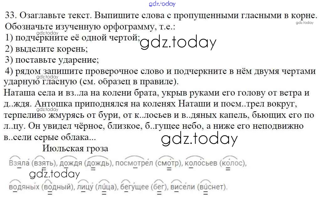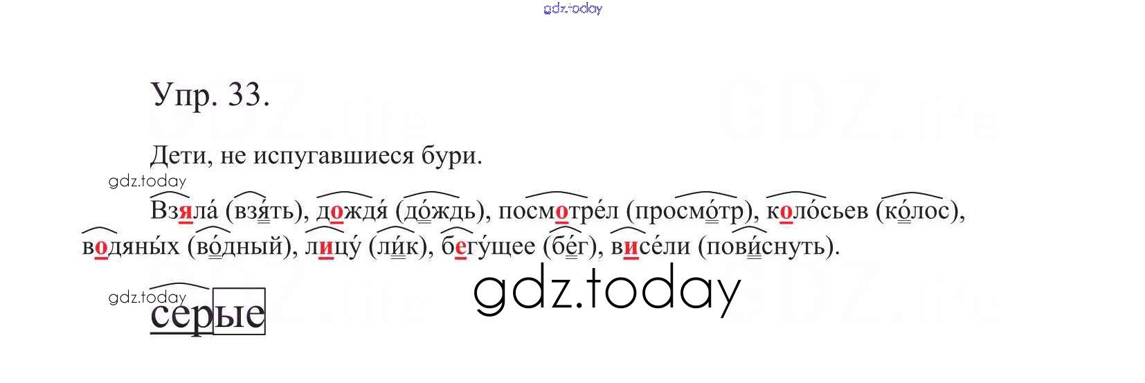 На страницах сайта gdz.today вы найдете учебный и вспомогательный материал, направленный на улучшения знаний школьной программы. ГДЗ - онлайн мир знаний Часть 1. Решение к упражнениям 33 Учебнику по Русскому языку для 5 класса Баранов, Ладыженская Просвещение, Просвещение 2016, 2019