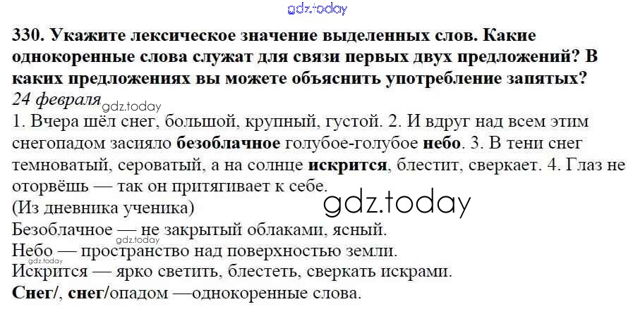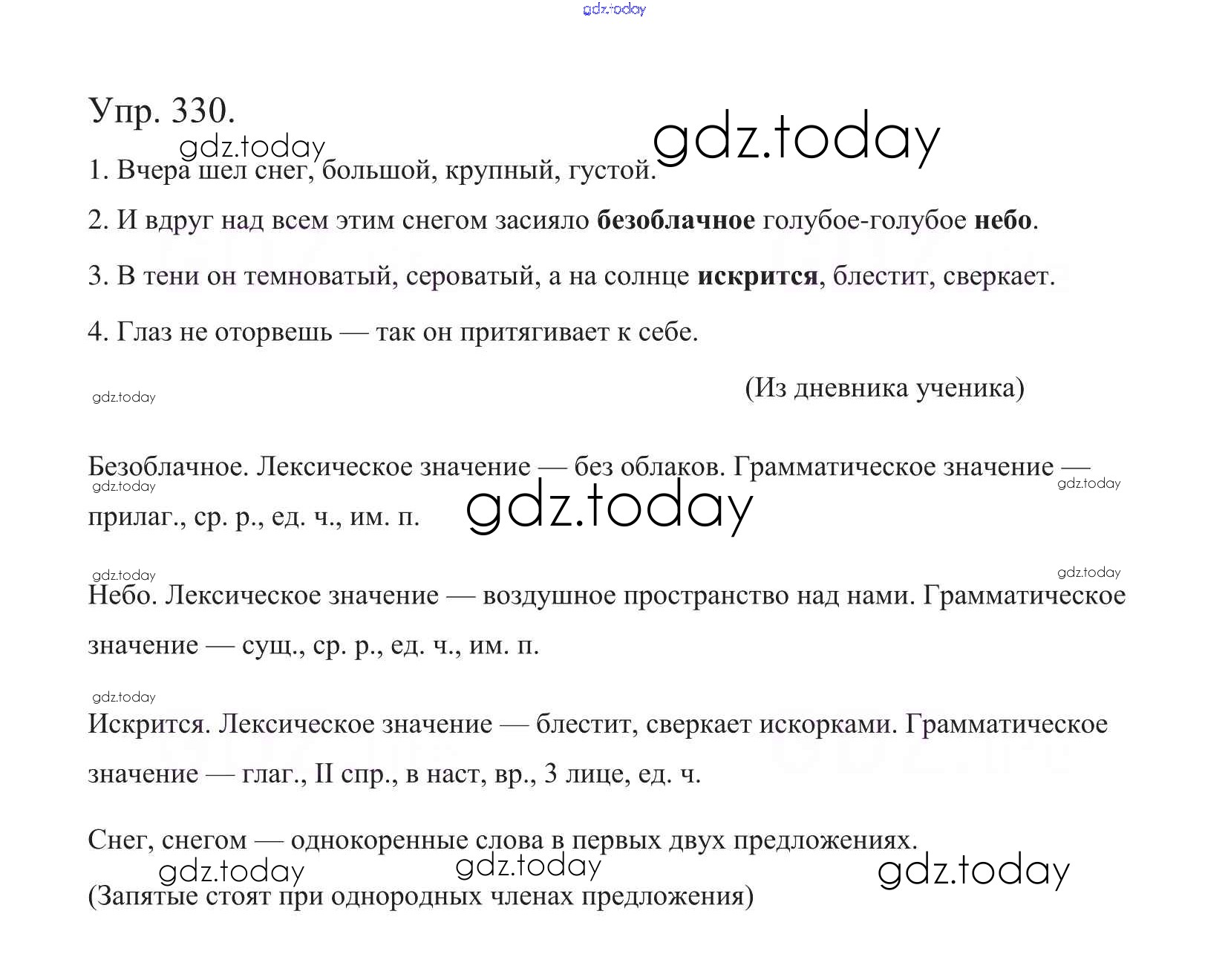 На страницах сайта gdz.today вы найдете учебный и вспомогательный материал, направленный на улучшения знаний школьной программы. ГДЗ - онлайн мир знаний Часть 1. Решение к упражнениям 330 Учебнику по Русскому языку для 5 класса Баранов, Ладыженская Просвещение, Просвещение 2016, 2019