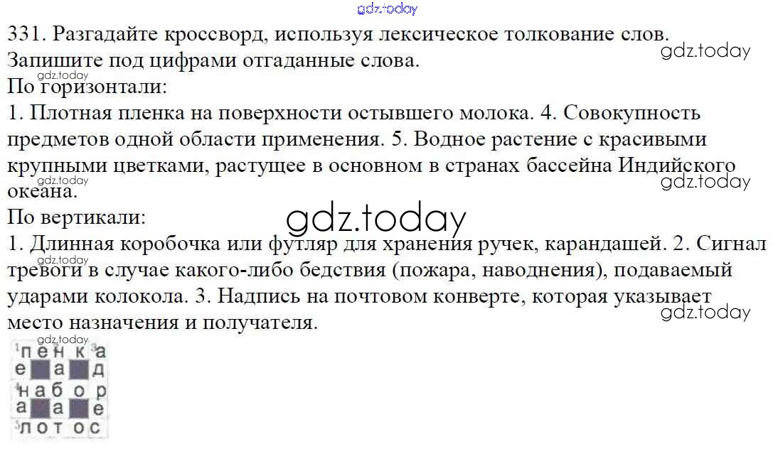 На страницах сайта gdz.today вы найдете учебный и вспомогательный материал, направленный на улучшения знаний школьной программы. ГДЗ - онлайн мир знаний Часть 1. Решение к упражнениям 331 Учебнику по Русскому языку для 5 класса Баранов, Ладыженская Просвещение, Просвещение 2016, 2019