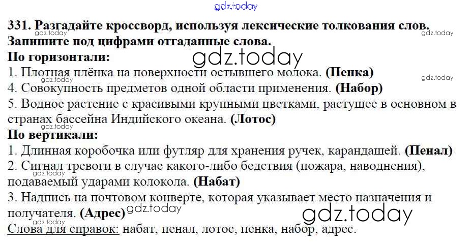 Ответы к Часть 1. Решение к упражнениям 331 Учебнику по Русскому языку для 5 класса Баранов, Ладыженская Просвещение, Просвещение 2016, 2019