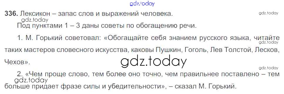 Ответы к Часть 1. Решение к упражнениям 336 Учебнику по Русскому языку для 5 класса Баранов, Ладыженская Просвещение, Просвещение 2016, 2019
