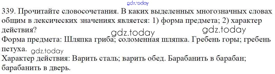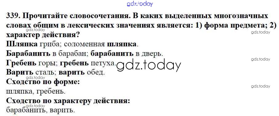 Ответы к Часть 1. Решение к упражнениям 339 Учебнику по Русскому языку для 5 класса Баранов, Ладыженская Просвещение, Просвещение 2016, 2019