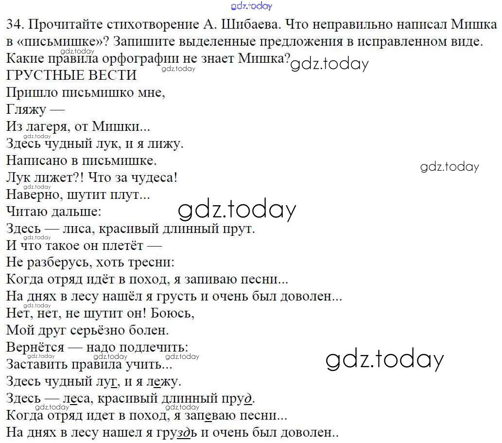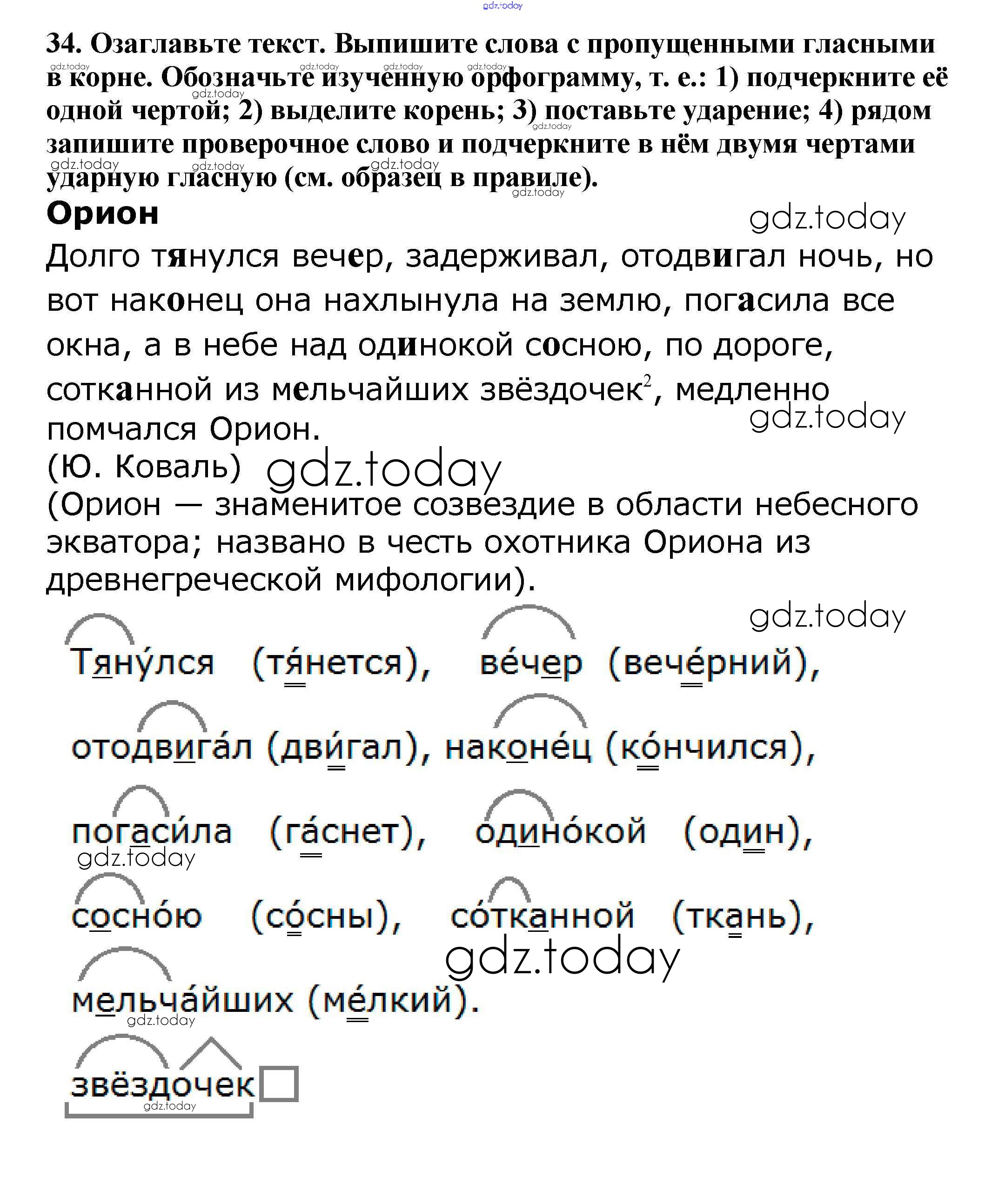 На страницах сайта gdz.today вы найдете учебный и вспомогательный материал, направленный на улучшения знаний школьной программы. ГДЗ - онлайн мир знаний Часть 1. Решение к упражнениям 34 Учебнику по Русскому языку для 5 класса Баранов, Ладыженская Просвещение, Просвещение 2016, 2019