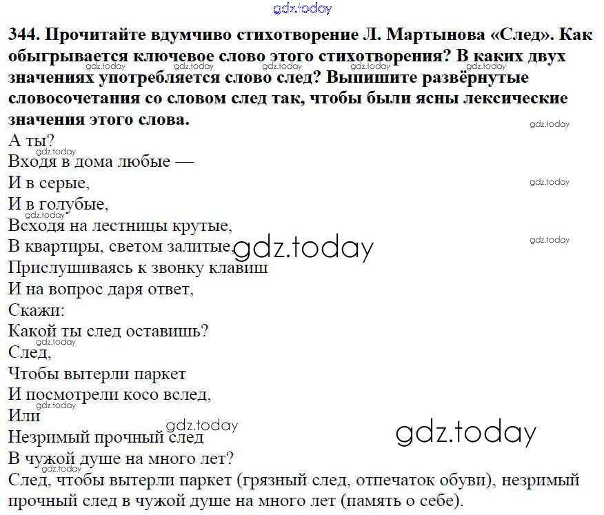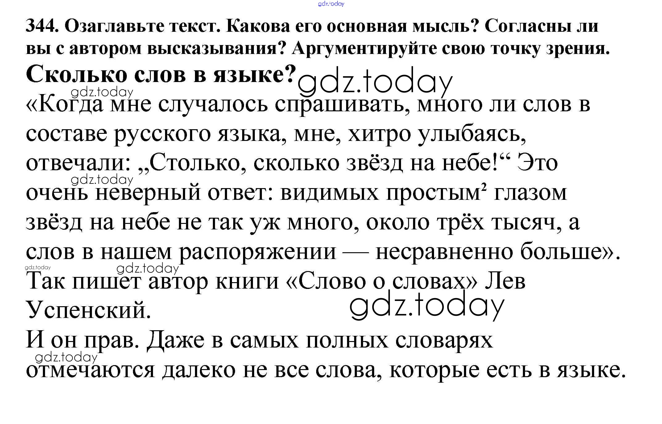 Ответы к Часть 1. Решение к упражнениям 344 Учебнику по Русскому языку для 5 класса Баранов, Ладыженская Просвещение, Просвещение 2016, 2019