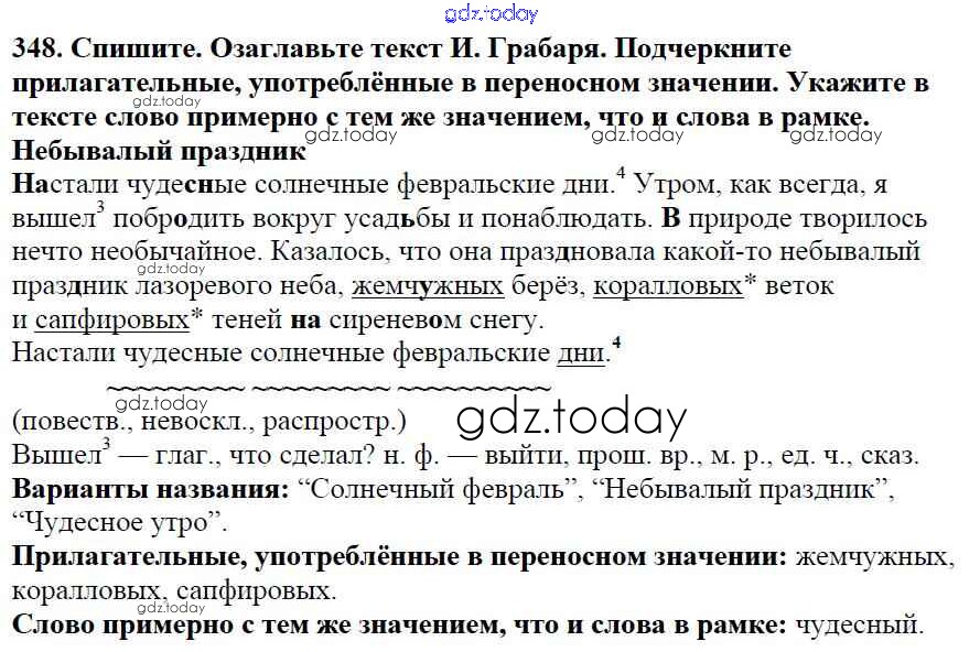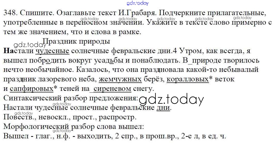 На страницах сайта gdz.today вы найдете учебный и вспомогательный материал, направленный на улучшения знаний школьной программы. ГДЗ - онлайн мир знаний Часть 1. Решение к упражнениям 348 Учебнику по Русскому языку для 5 класса Баранов, Ладыженская Просвещение, Просвещение 2016, 2019