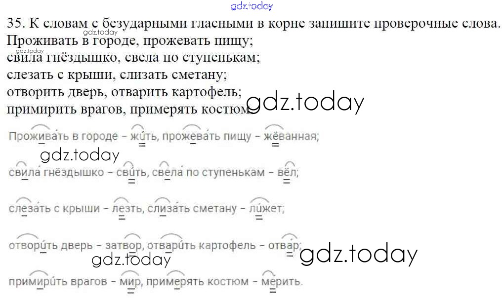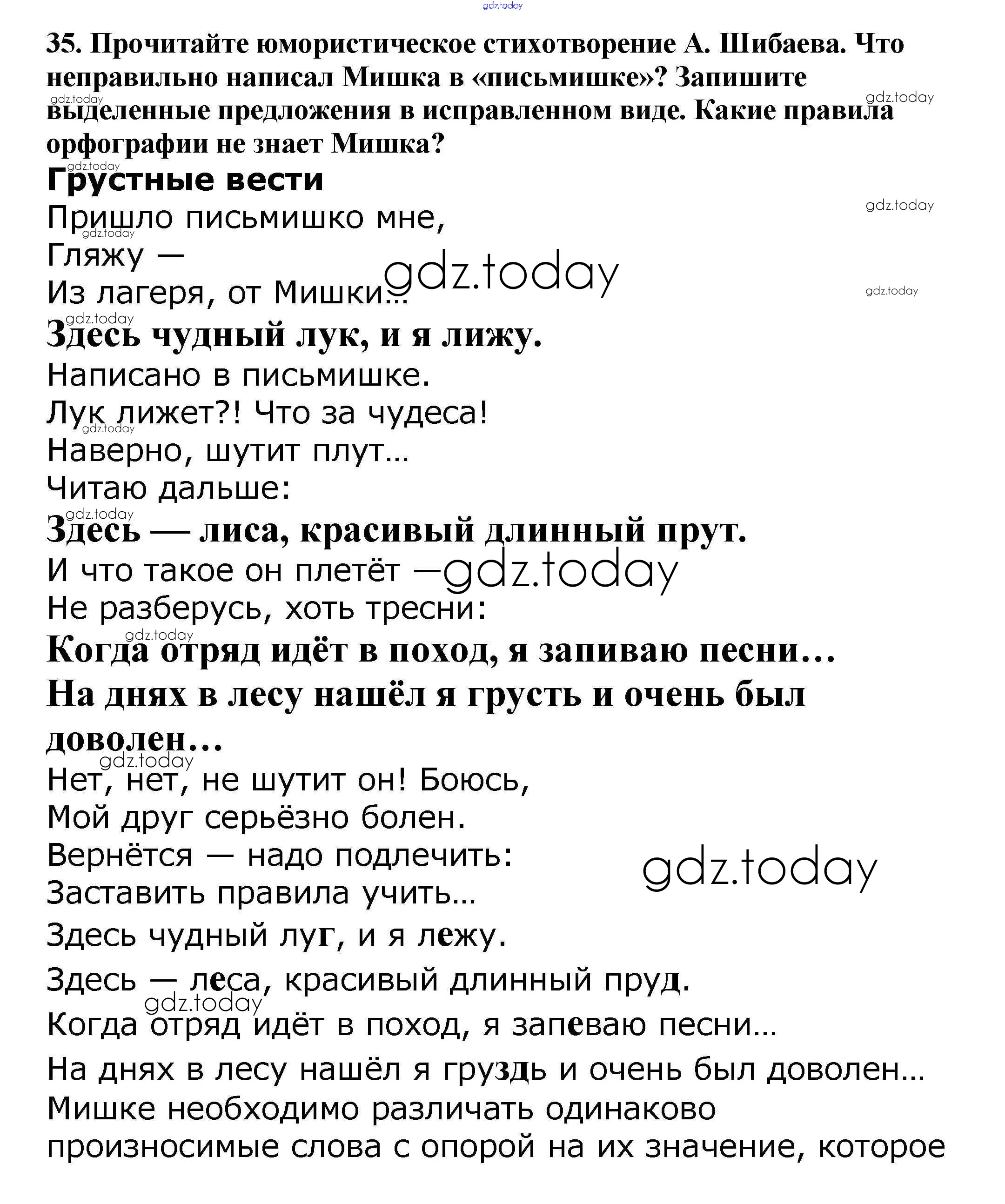 На страницах сайта gdz.today вы найдете учебный и вспомогательный материал, направленный на улучшения знаний школьной программы. ГДЗ - онлайн мир знаний Часть 1. Решение к упражнениям 35 Учебнику по Русскому языку для 5 класса Баранов, Ладыженская Просвещение, Просвещение 2016, 2019