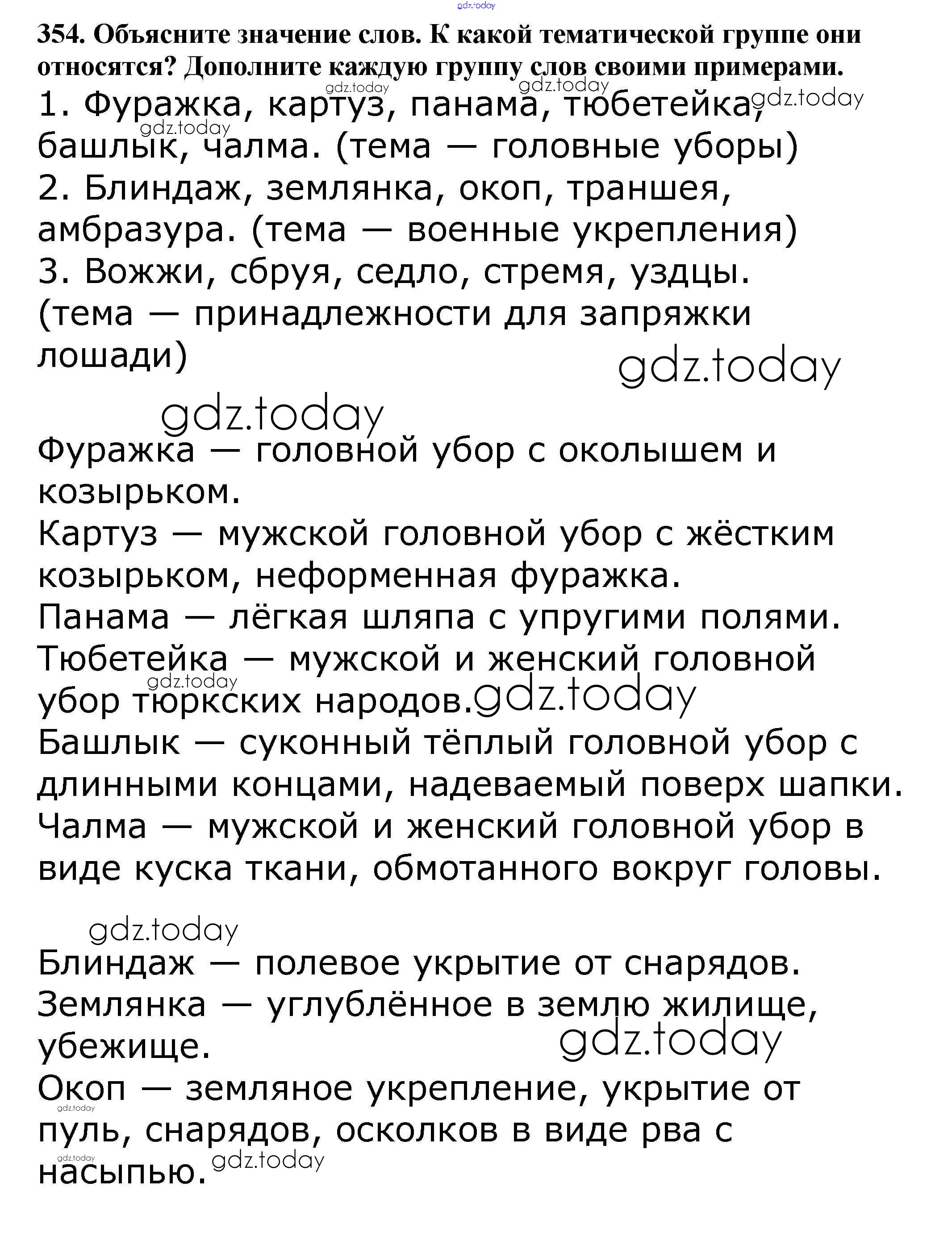 Ответы к Часть 1. Решение к упражнениям 354 Учебнику по Русскому языку для 5 класса Баранов, Ладыженская Просвещение, Просвещение 2016, 2019