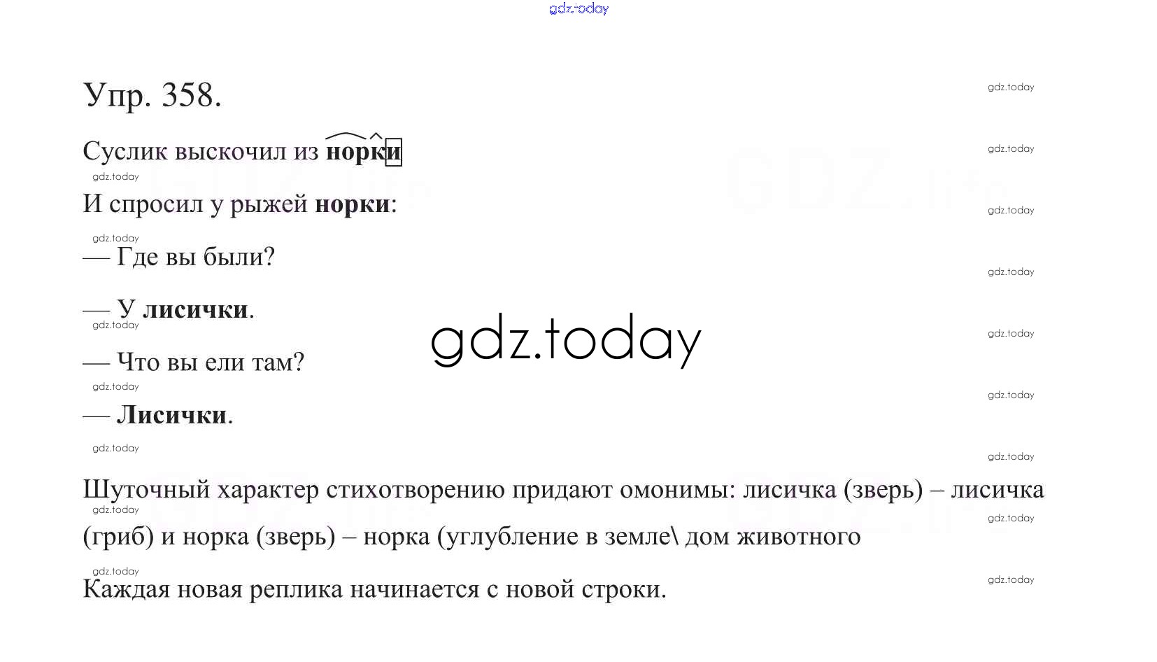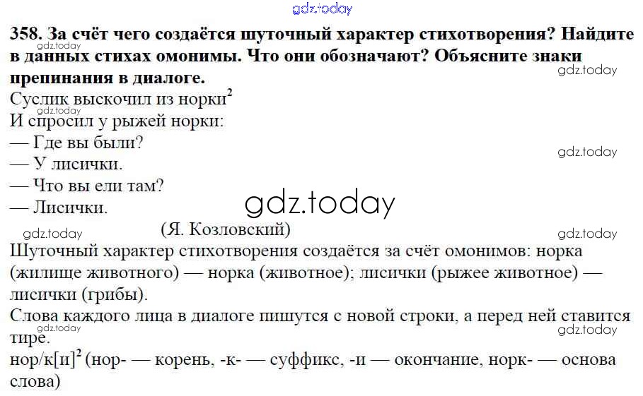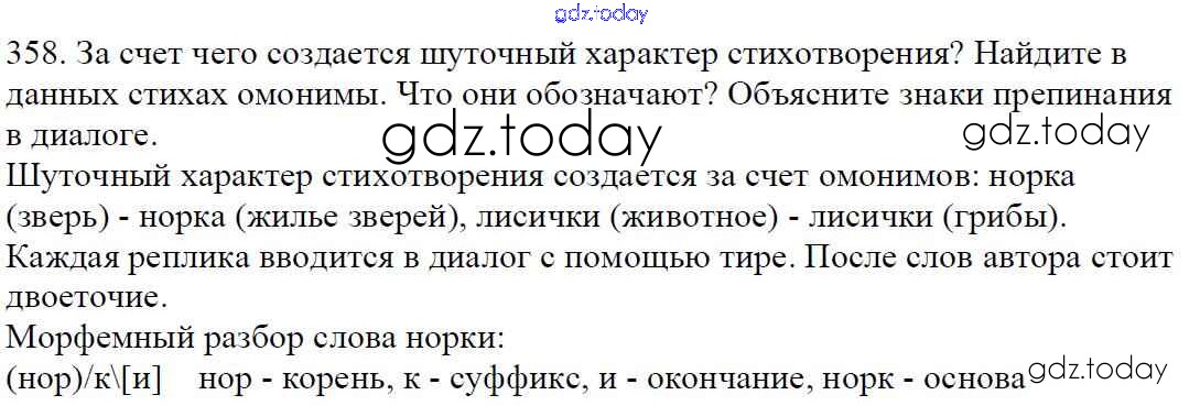 На страницах сайта gdz.today вы найдете учебный и вспомогательный материал, направленный на улучшения знаний школьной программы. ГДЗ - онлайн мир знаний Часть 1. Решение к упражнениям 358 Учебнику по Русскому языку для 5 класса Баранов, Ладыженская Просвещение, Просвещение 2016, 2019