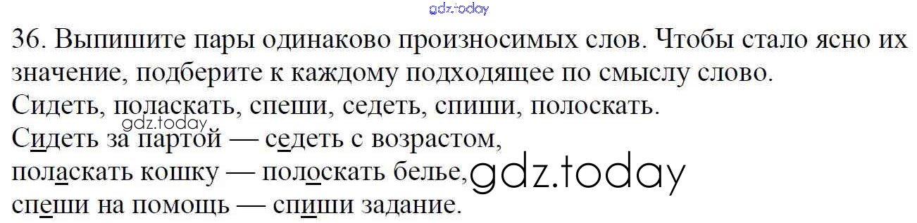 На страницах сайта gdz.today вы найдете учебный и вспомогательный материал, направленный на улучшения знаний школьной программы. ГДЗ - онлайн мир знаний Часть 1. Решение к упражнениям 36 Учебнику по Русскому языку для 5 класса Баранов, Ладыженская Просвещение, Просвещение 2016, 2019