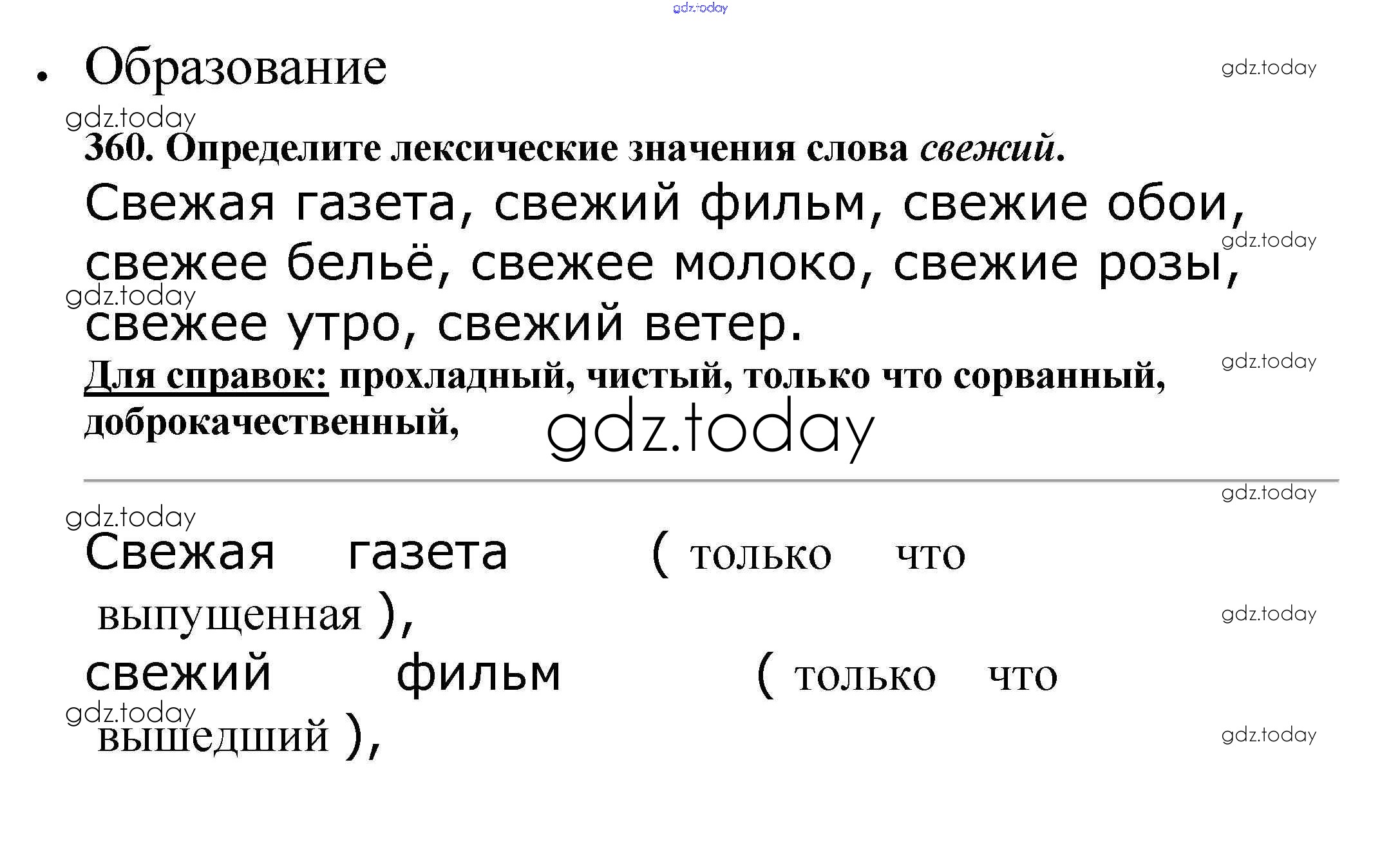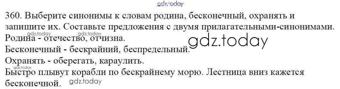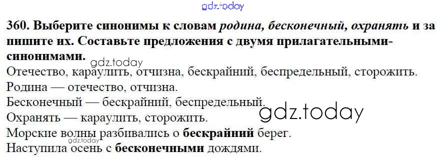 На страницах сайта gdz.today вы найдете учебный и вспомогательный материал, направленный на улучшения знаний школьной программы. ГДЗ - онлайн мир знаний Часть 1. Решение к упражнениям 360 Учебнику по Русскому языку для 5 класса Баранов, Ладыженская Просвещение, Просвещение 2016, 2019