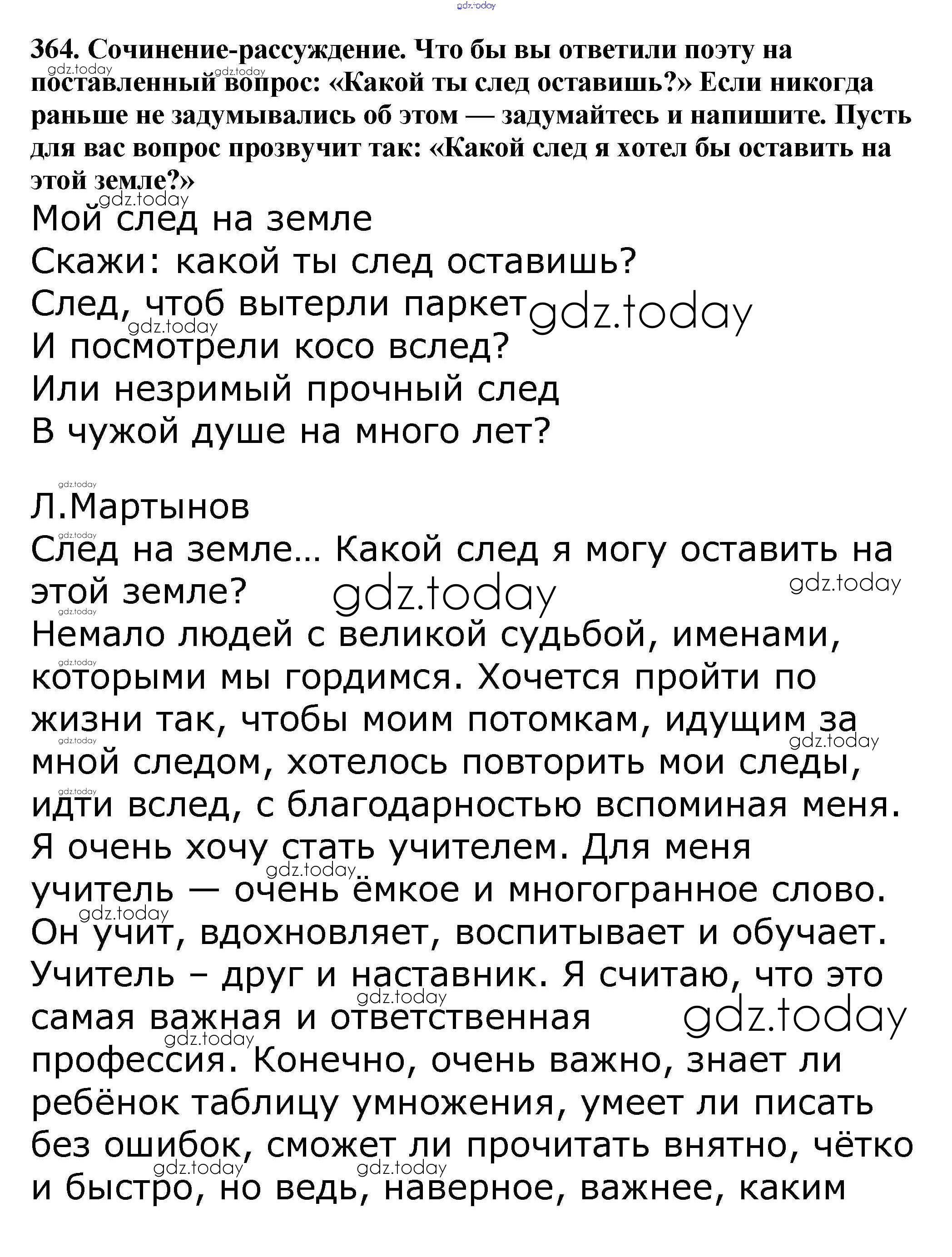 На страницах сайта gdz.today вы найдете учебный и вспомогательный материал, направленный на улучшения знаний школьной программы. ГДЗ - онлайн мир знаний Часть 1. Решение к упражнениям 364 Учебнику по Русскому языку для 5 класса Баранов, Ладыженская Просвещение, Просвещение 2016, 2019