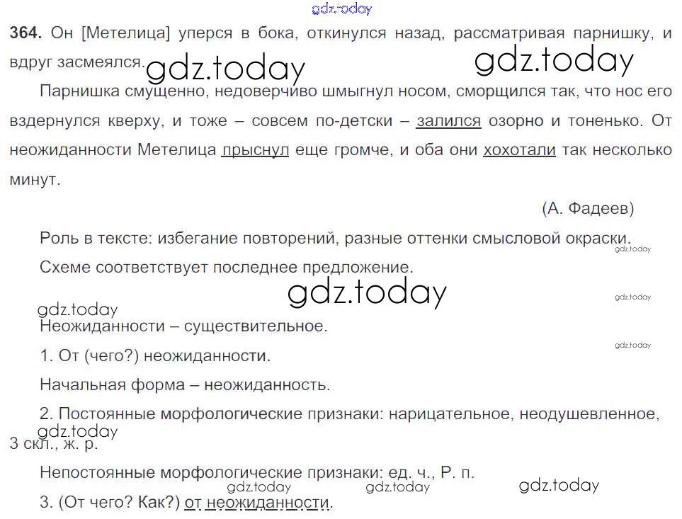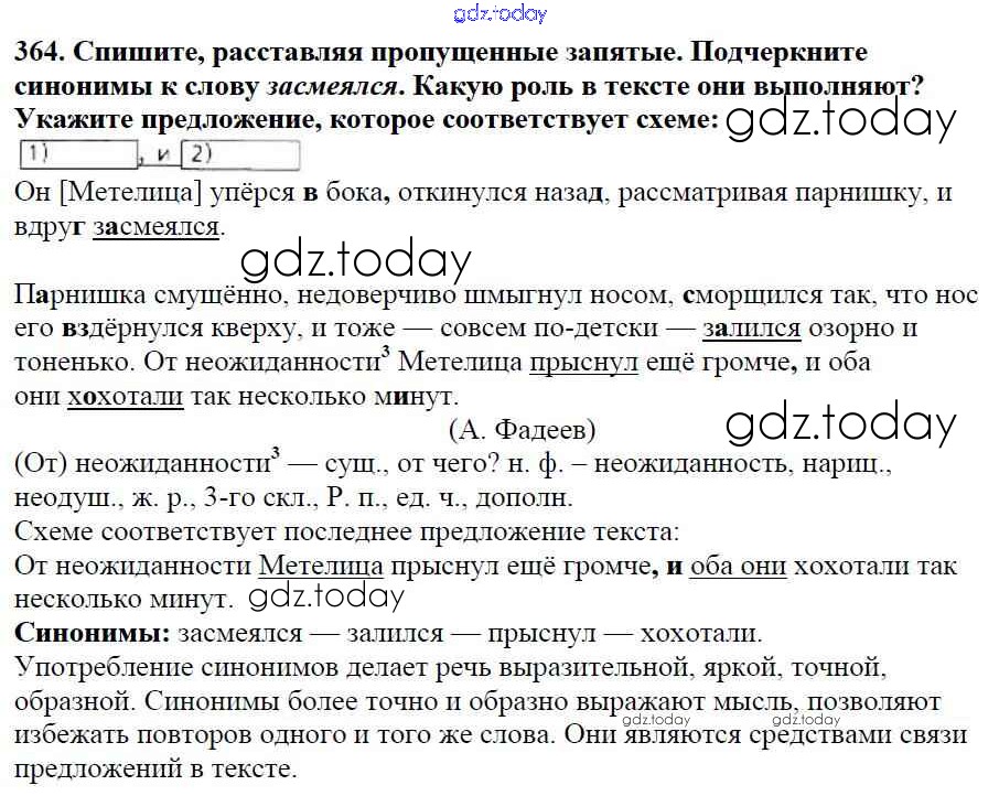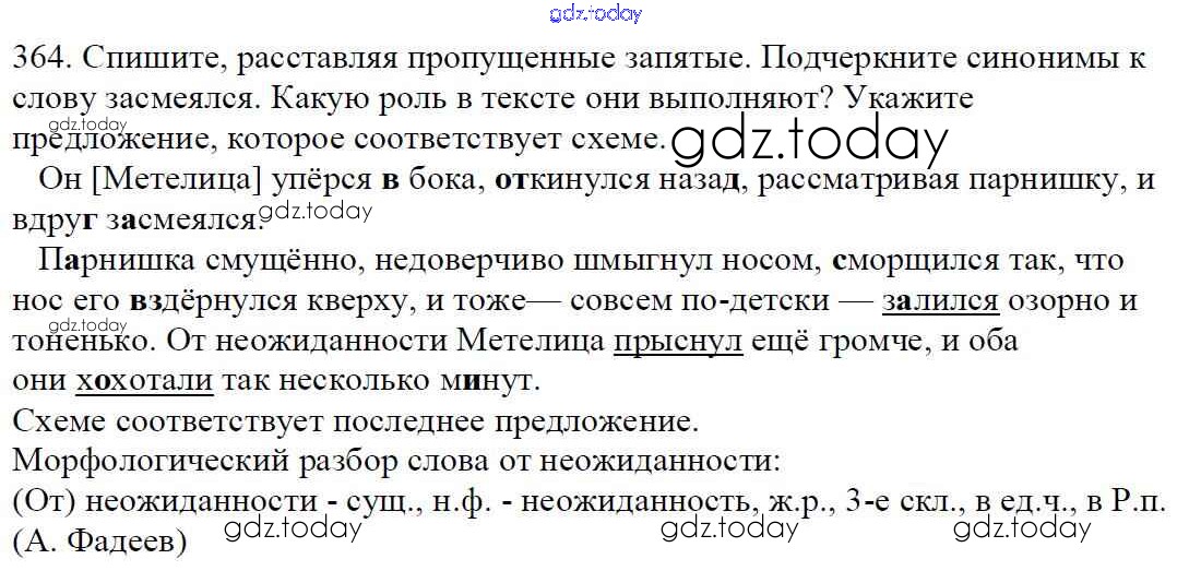 Ответы к Часть 1. Решение к упражнениям 364 Учебнику по Русскому языку для 5 класса Баранов, Ладыженская Просвещение, Просвещение 2016, 2019