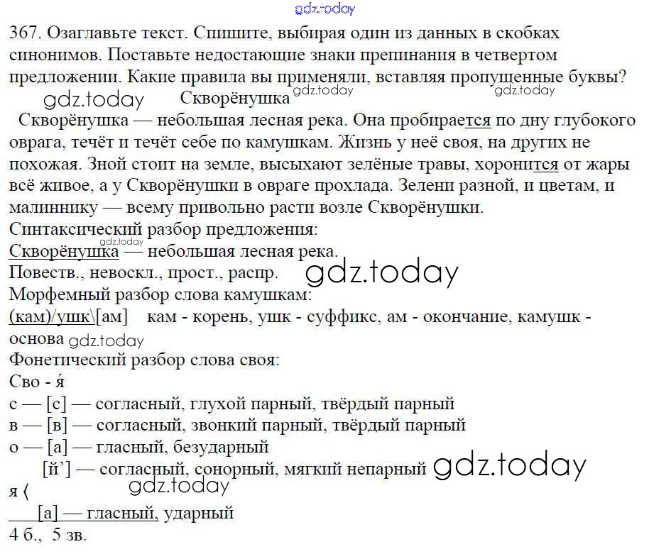 На страницах сайта gdz.today вы найдете учебный и вспомогательный материал, направленный на улучшения знаний школьной программы. ГДЗ - онлайн мир знаний Часть 1. Решение к упражнениям 367 Учебнику по Русскому языку для 5 класса Баранов, Ладыженская Просвещение, Просвещение 2016, 2019