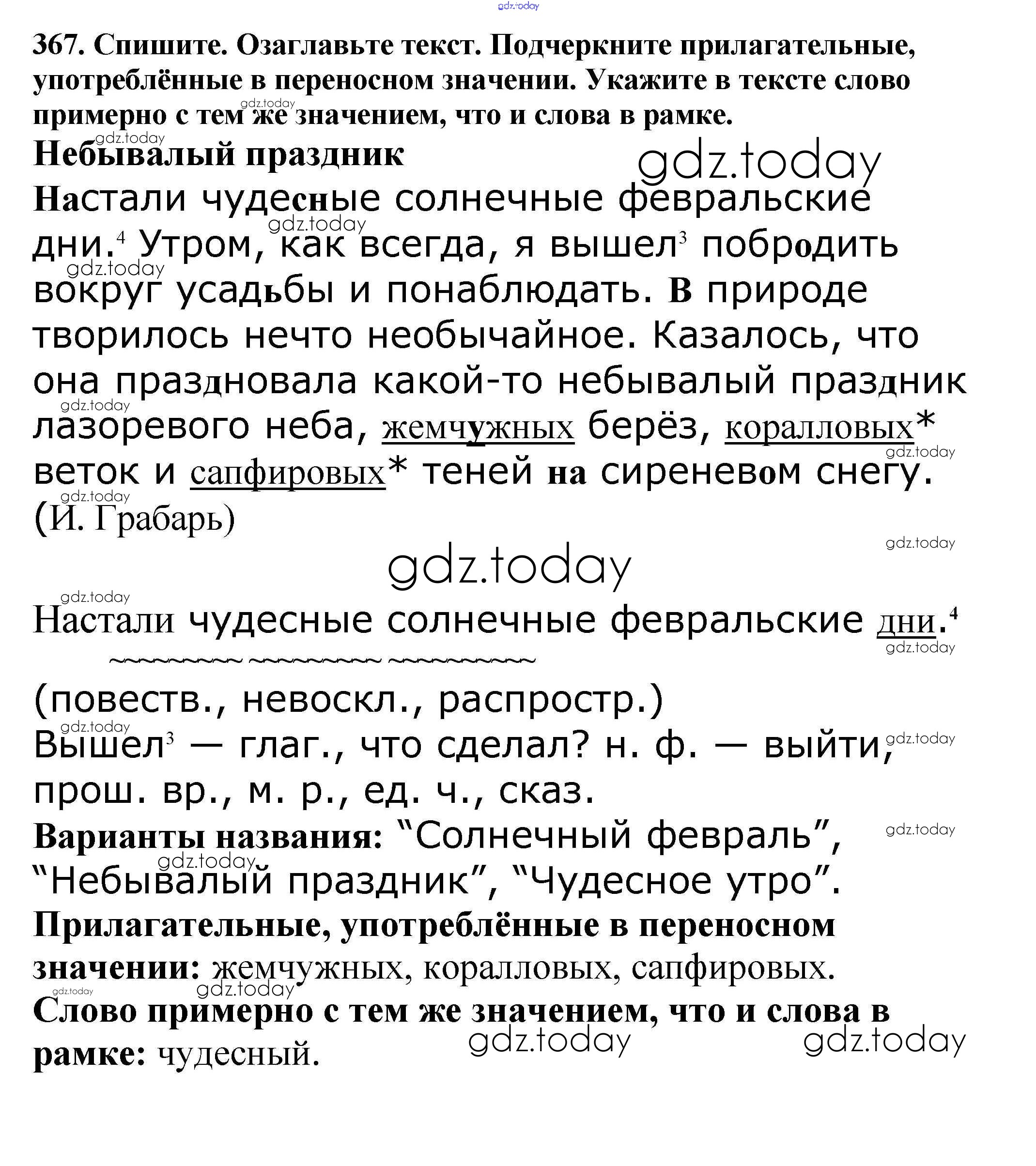 Ответы к Часть 1. Решение к упражнениям 367 Учебнику по Русскому языку для 5 класса Баранов, Ладыженская Просвещение, Просвещение 2016, 2019