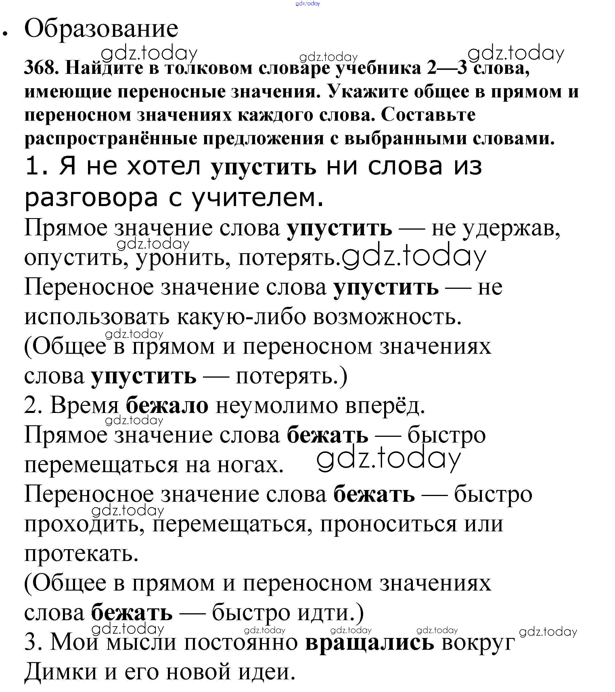Ответы к Часть 1. Решение к упражнениям 368 Учебнику по Русскому языку для 5 класса Баранов, Ладыженская Просвещение, Просвещение 2016, 2019