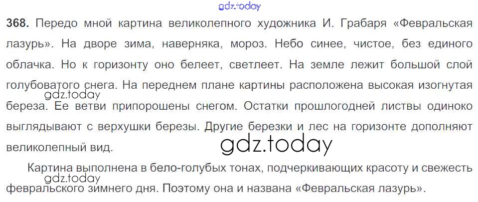 На страницах сайта gdz.today вы найдете учебный и вспомогательный материал, направленный на улучшения знаний школьной программы. ГДЗ - онлайн мир знаний Часть 1. Решение к упражнениям 368 Учебнику по Русскому языку для 5 класса Баранов, Ладыженская Просвещение, Просвещение 2016, 2019