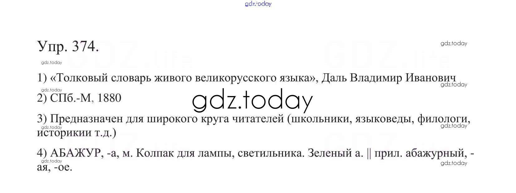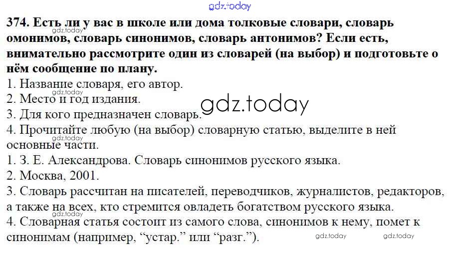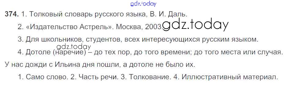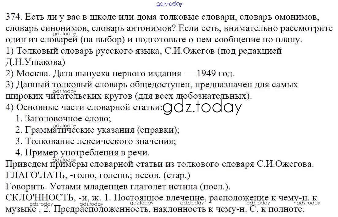 На страницах сайта gdz.today вы найдете учебный и вспомогательный материал, направленный на улучшения знаний школьной программы. ГДЗ - онлайн мир знаний Часть 1. Решение к упражнениям 374 Учебнику по Русскому языку для 5 класса Баранов, Ладыженская Просвещение, Просвещение 2016, 2019