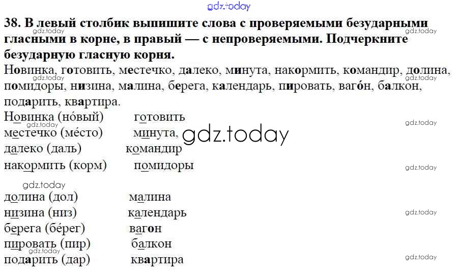 На страницах сайта gdz.today вы найдете учебный и вспомогательный материал, направленный на улучшения знаний школьной программы. ГДЗ - онлайн мир знаний Часть 1. Решение к упражнениям 38 Учебнику по Русскому языку для 5 класса Баранов, Ладыженская Просвещение, Просвещение 2016, 2019