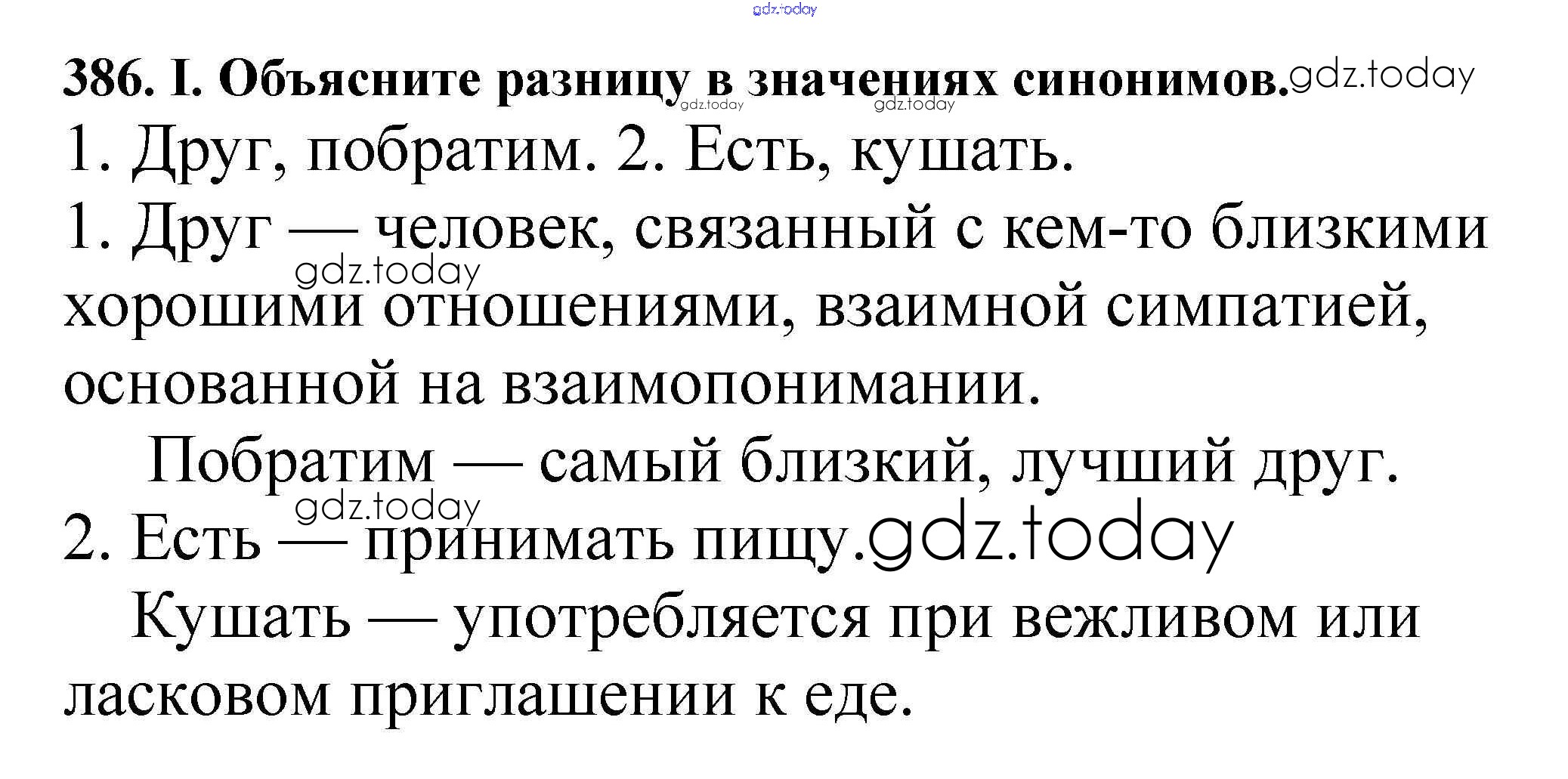 Ответы к Часть 1. Решение к упражнениям 386 Учебнику по Русскому языку для 5 класса Баранов, Ладыженская Просвещение, Просвещение 2016, 2019
