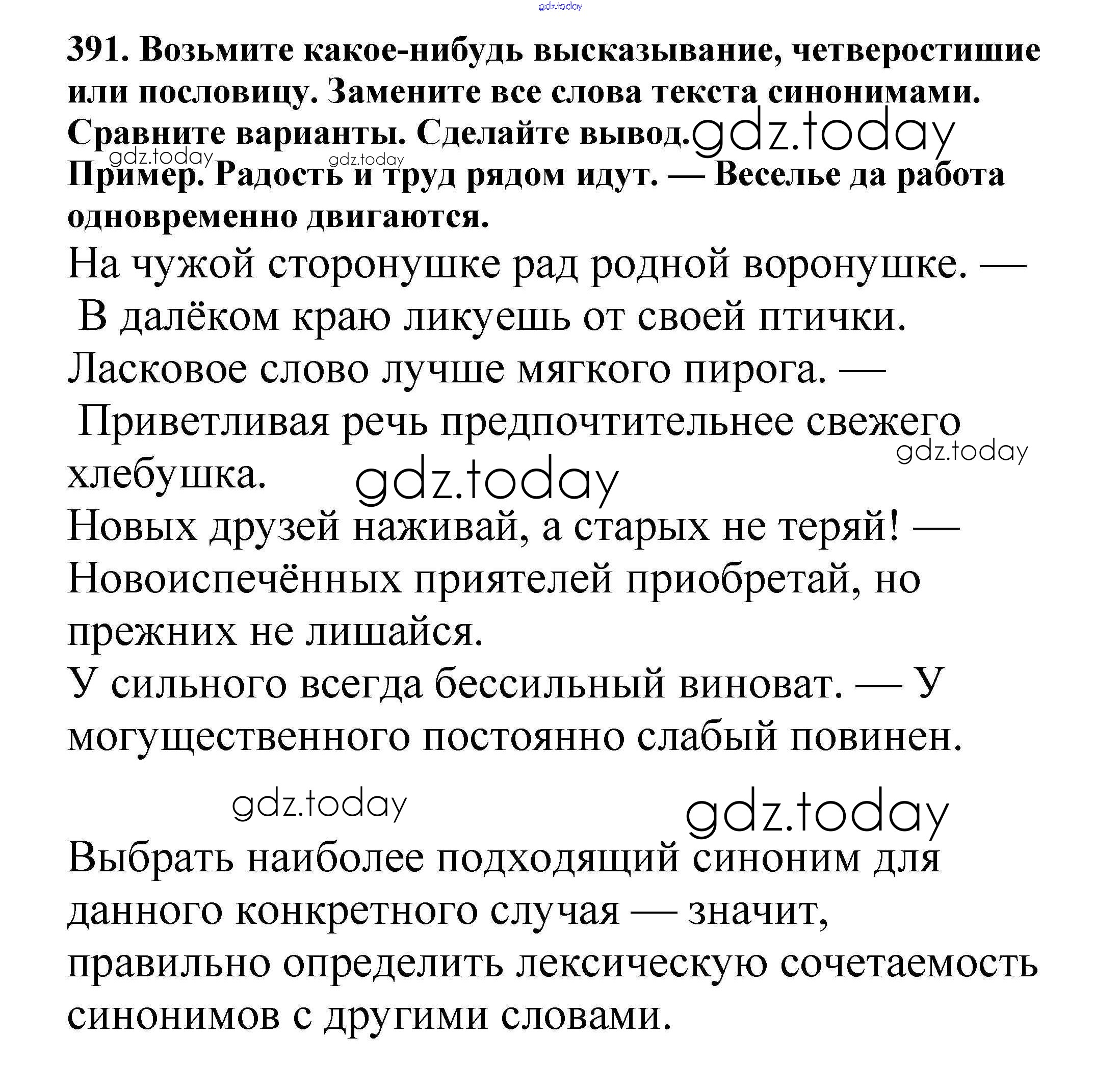 Ответы к Часть 1. Решение к упражнениям 391 Учебнику по Русскому языку для 5 класса Баранов, Ладыженская Просвещение, Просвещение 2016, 2019