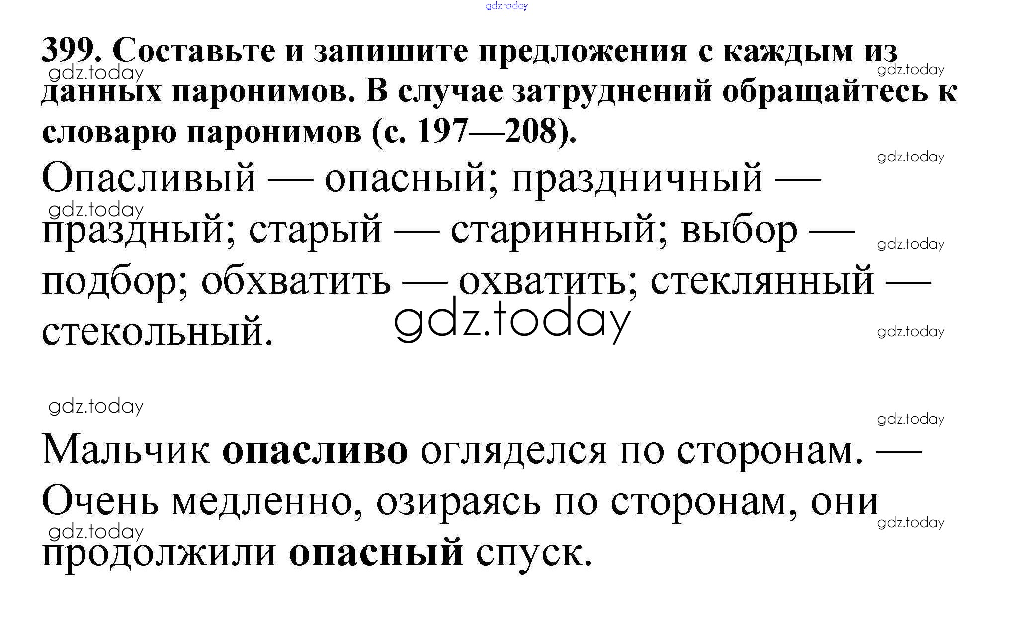 Ответы к Часть 1. Решение к упражнениям 399 Учебнику по Русскому языку для 5 класса Баранов, Ладыженская Просвещение, Просвещение 2016, 2019