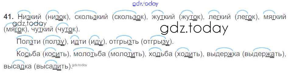 На страницах сайта gdz.today вы найдете учебный и вспомогательный материал, направленный на улучшения знаний школьной программы. ГДЗ - онлайн мир знаний Часть 1. Решение к упражнениям 41 Учебнику по Русскому языку для 5 класса Баранов, Ладыженская Просвещение, Просвещение 2016, 2019