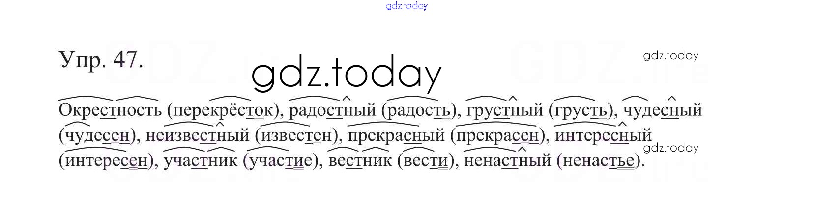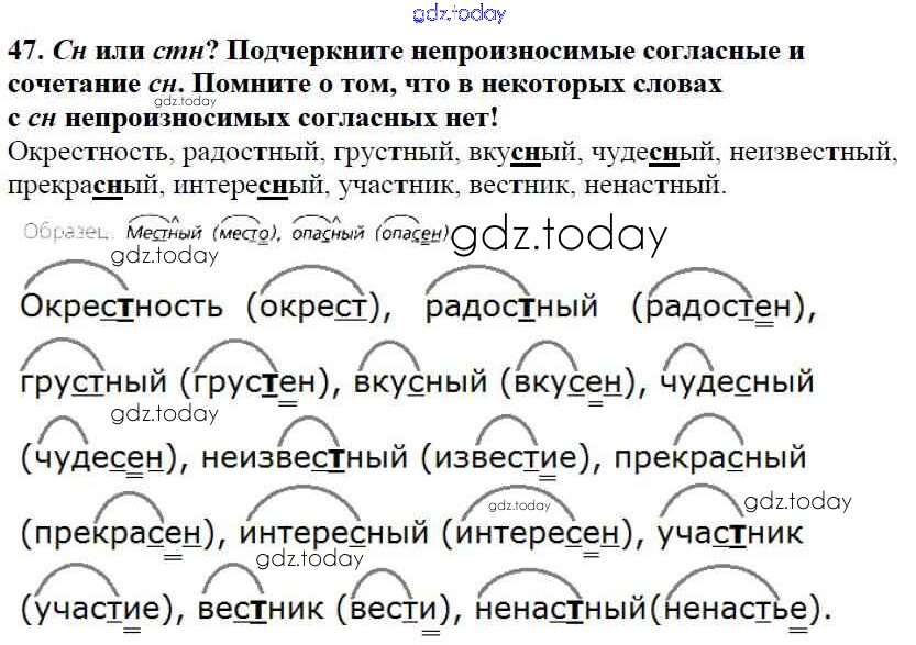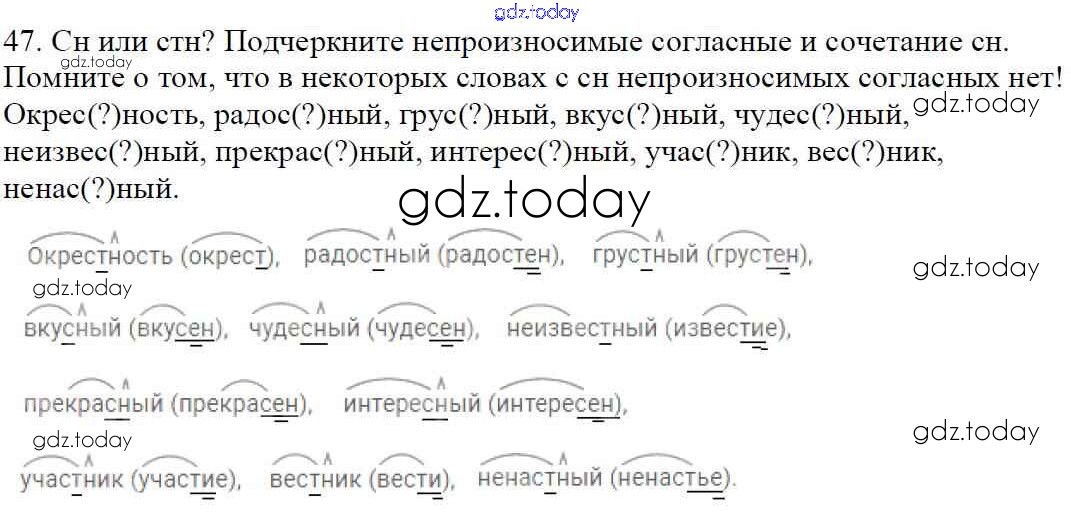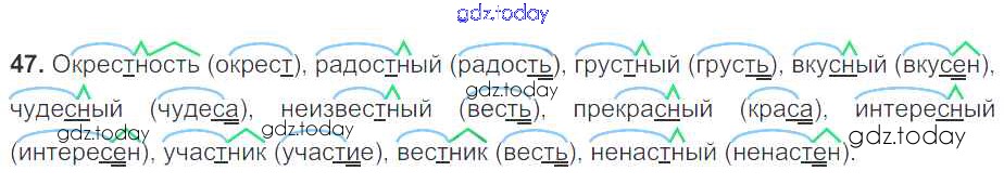 На страницах сайта gdz.today вы найдете учебный и вспомогательный материал, направленный на улучшения знаний школьной программы. ГДЗ - онлайн мир знаний Часть 1. Решение к упражнениям 47 Учебнику по Русскому языку для 5 класса Баранов, Ладыженская Просвещение, Просвещение 2016, 2019