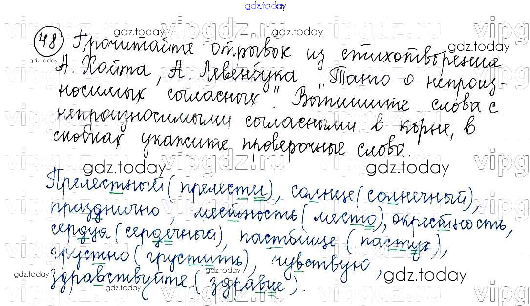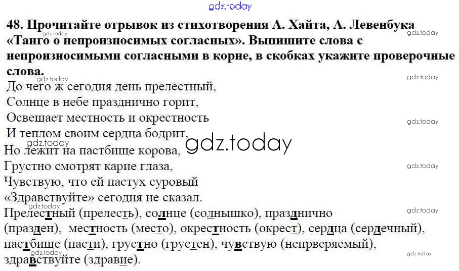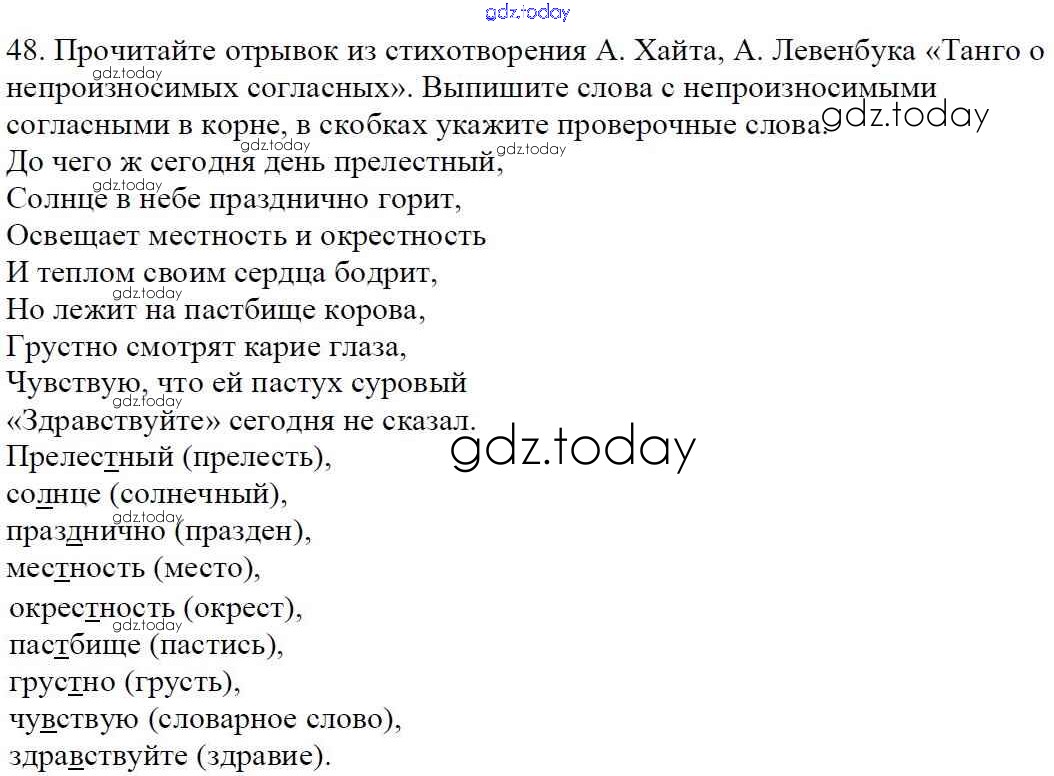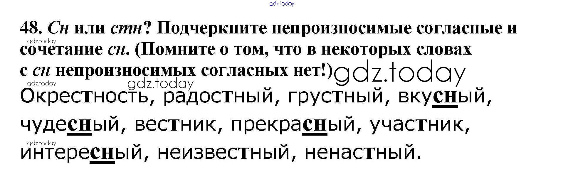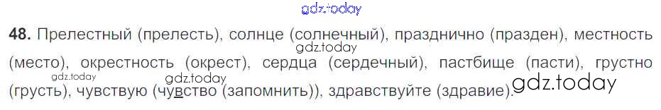 На страницах сайта gdz.today вы найдете учебный и вспомогательный материал, направленный на улучшения знаний школьной программы. ГДЗ - онлайн мир знаний Часть 1. Решение к упражнениям 48 Учебнику по Русскому языку для 5 класса Баранов, Ладыженская Просвещение, Просвещение 2016, 2019
