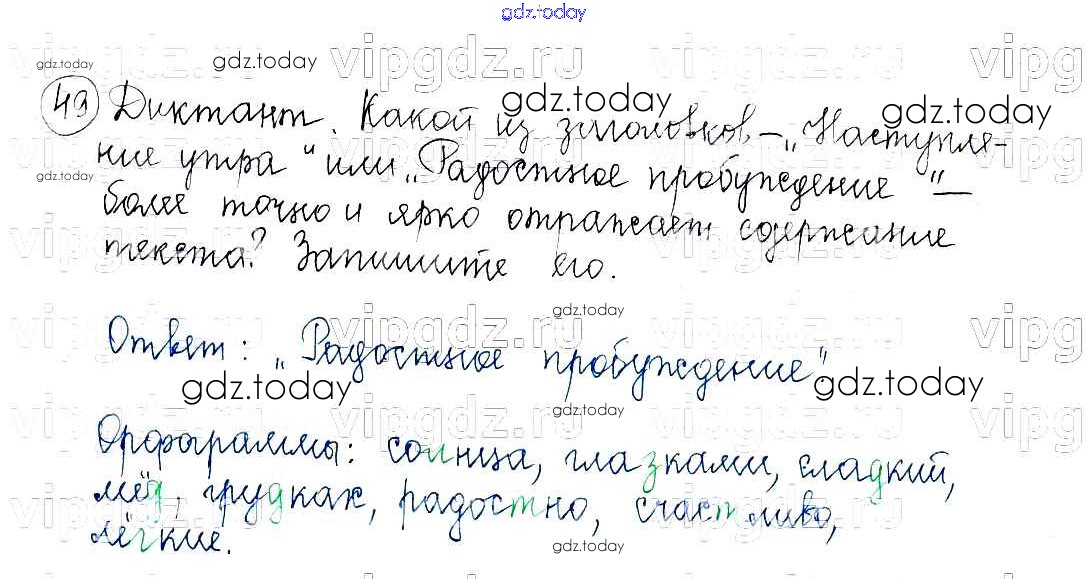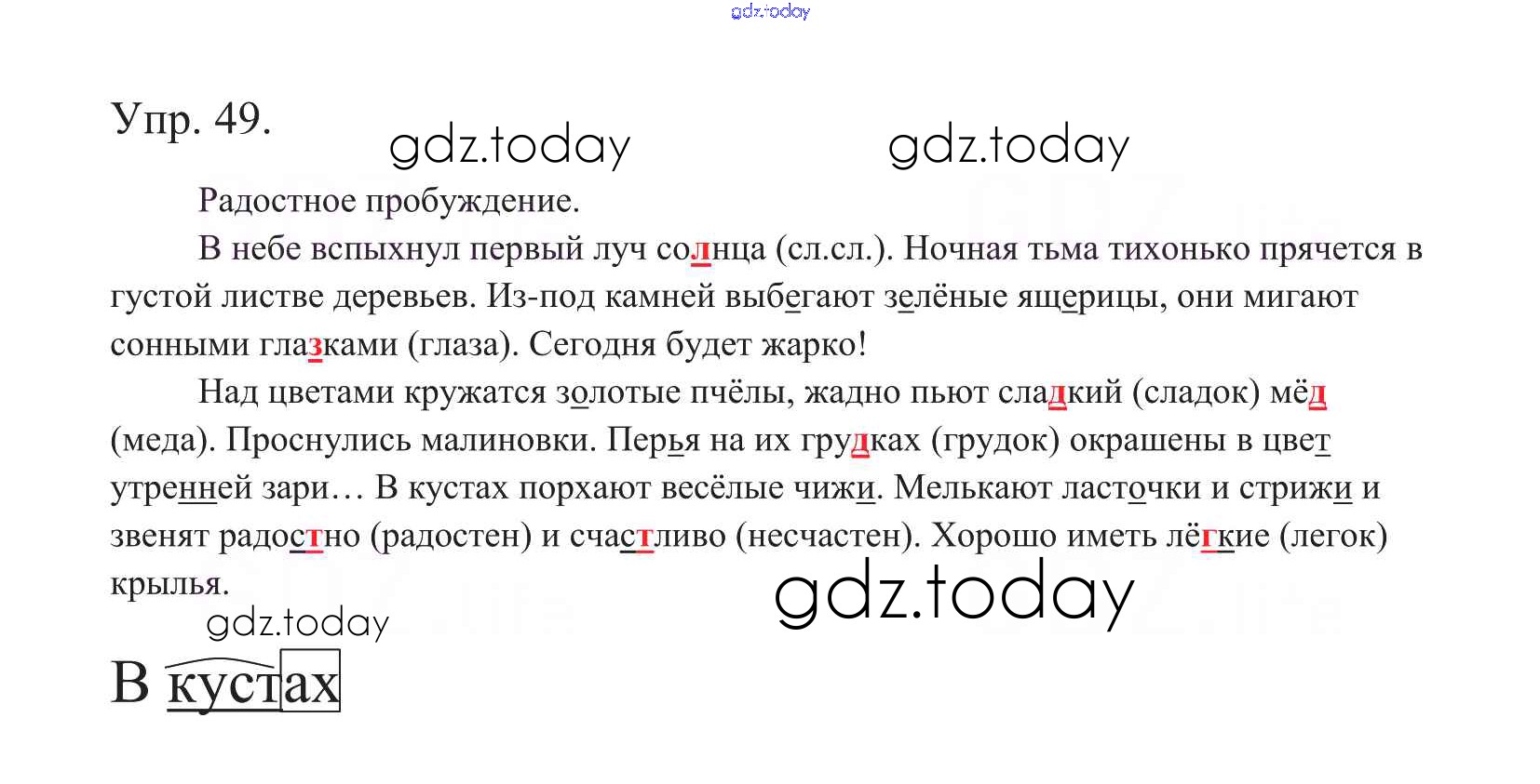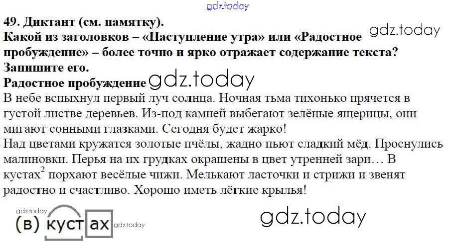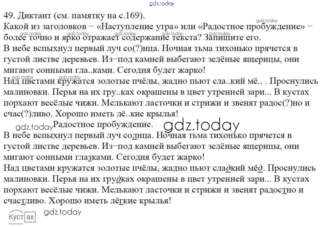 На страницах сайта gdz.today вы найдете учебный и вспомогательный материал, направленный на улучшения знаний школьной программы. ГДЗ - онлайн мир знаний Часть 1. Решение к упражнениям 49 Учебнику по Русскому языку для 5 класса Баранов, Ладыженская Просвещение, Просвещение 2016, 2019
