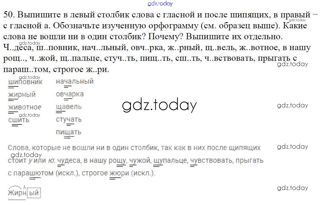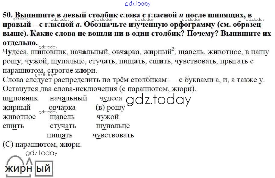 На страницах сайта gdz.today вы найдете учебный и вспомогательный материал, направленный на улучшения знаний школьной программы. ГДЗ - онлайн мир знаний Часть 1. Решение к упражнениям 50 Учебнику по Русскому языку для 5 класса Баранов, Ладыженская Просвещение, Просвещение 2016, 2019