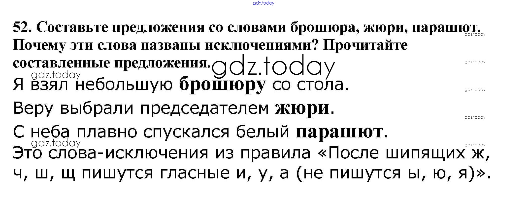 Ответы к Часть 1. Решение к упражнениям 52 Учебнику по Русскому языку для 5 класса Баранов, Ладыженская Просвещение, Просвещение 2016, 2019