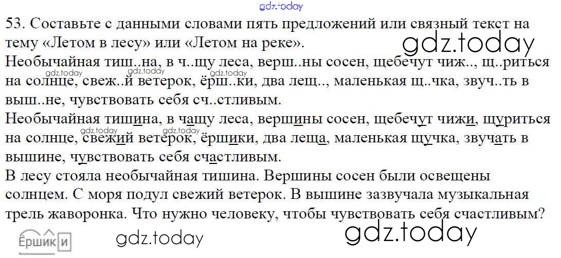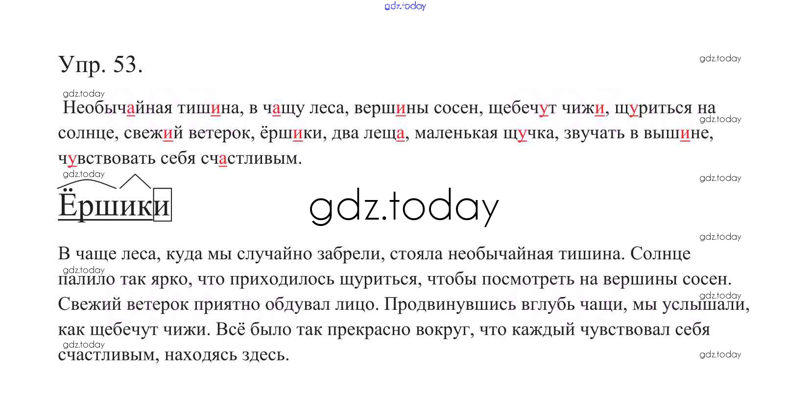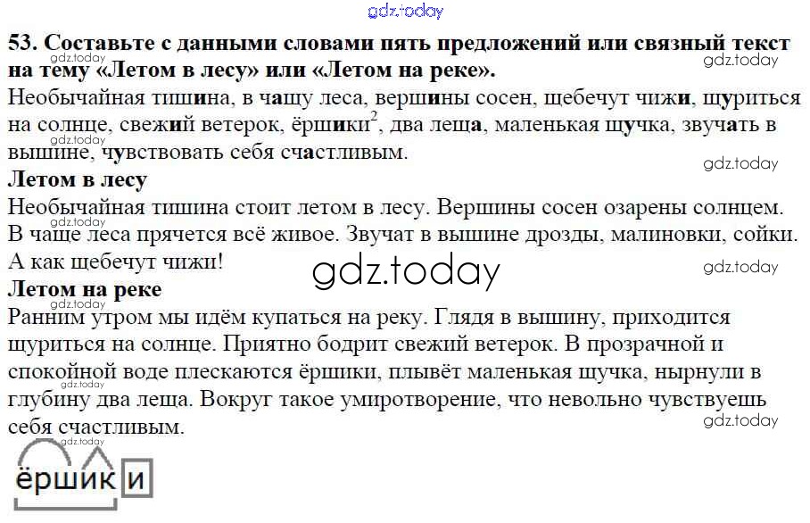 На страницах сайта gdz.today вы найдете учебный и вспомогательный материал, направленный на улучшения знаний школьной программы. ГДЗ - онлайн мир знаний Часть 1. Решение к упражнениям 53 Учебнику по Русскому языку для 5 класса Баранов, Ладыженская Просвещение, Просвещение 2016, 2019