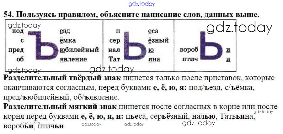 Ответы к Часть 1. Решение к упражнениям 54 Учебнику по Русскому языку для 5 класса Баранов, Ладыженская Просвещение, Просвещение 2016, 2019