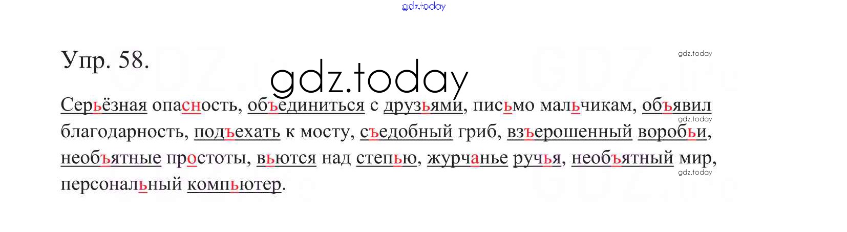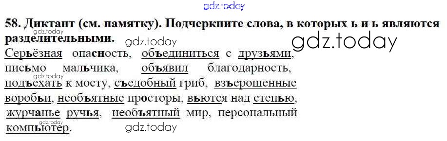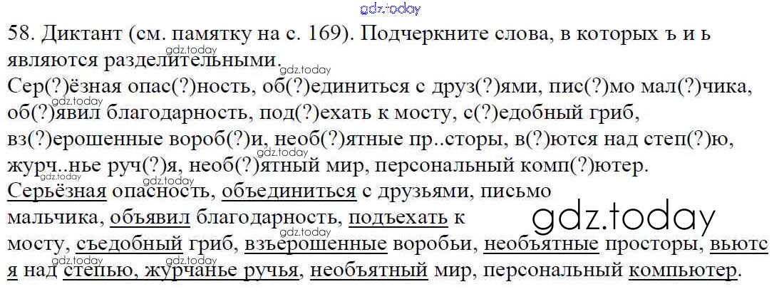 На страницах сайта gdz.today вы найдете учебный и вспомогательный материал, направленный на улучшения знаний школьной программы. ГДЗ - онлайн мир знаний Часть 1. Решение к упражнениям 58 Учебнику по Русскому языку для 5 класса Баранов, Ладыженская Просвещение, Просвещение 2016, 2019