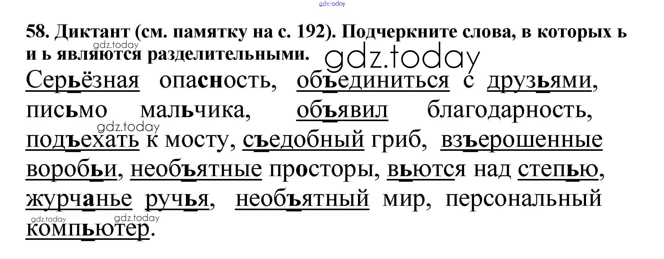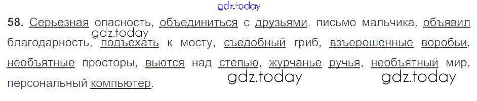 Ответы к Часть 1. Решение к упражнениям 58 Учебнику по Русскому языку для 5 класса Баранов, Ладыженская Просвещение, Просвещение 2016, 2019