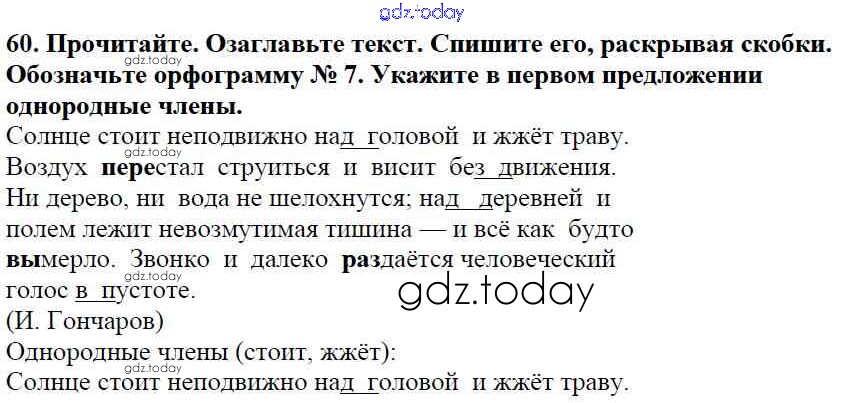 На страницах сайта gdz.today вы найдете учебный и вспомогательный материал, направленный на улучшения знаний школьной программы. ГДЗ - онлайн мир знаний Часть 1. Решение к упражнениям 60 Учебнику по Русскому языку для 5 класса Баранов, Ладыженская Просвещение, Просвещение 2016, 2019
