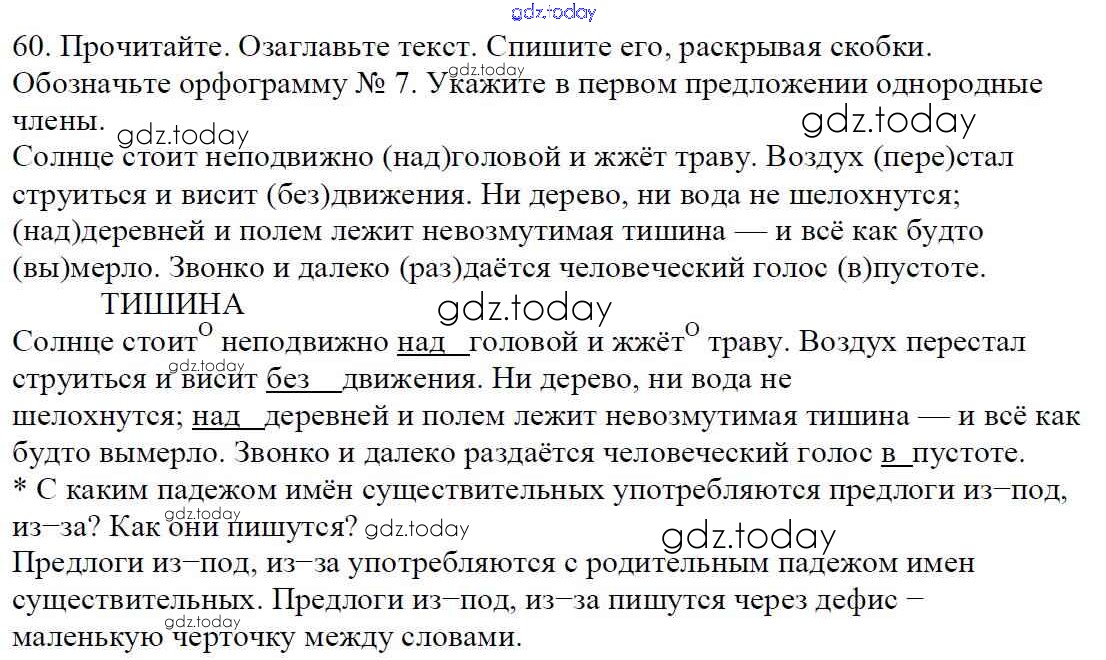 Ответы к Часть 1. Решение к упражнениям 60 Учебнику по Русскому языку для 5 класса Баранов, Ладыженская Просвещение, Просвещение 2016, 2019
