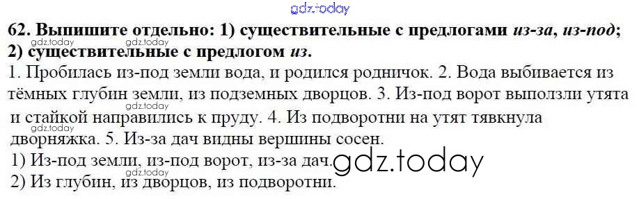 Ответы к Часть 1. Решение к упражнениям 62 Учебнику по Русскому языку для 5 класса Баранов, Ладыженская Просвещение, Просвещение 2016, 2019
