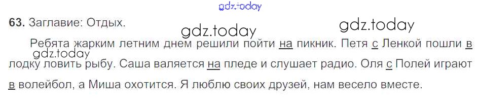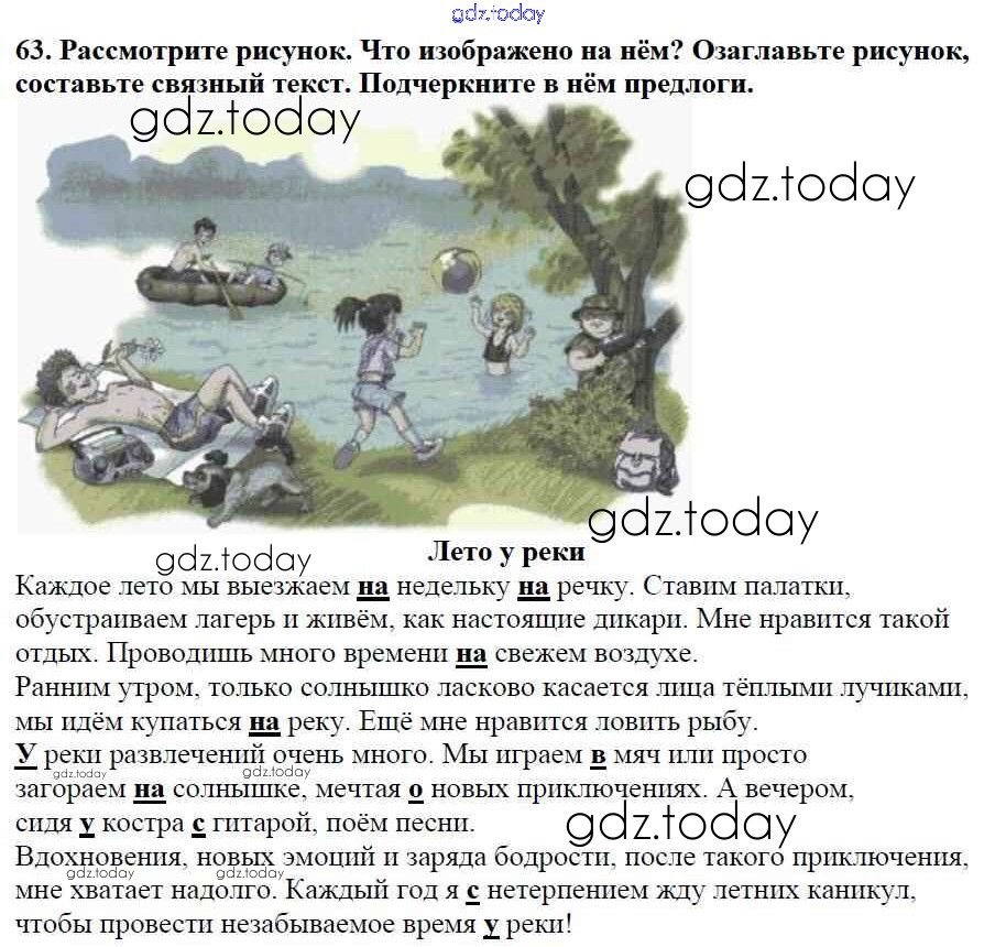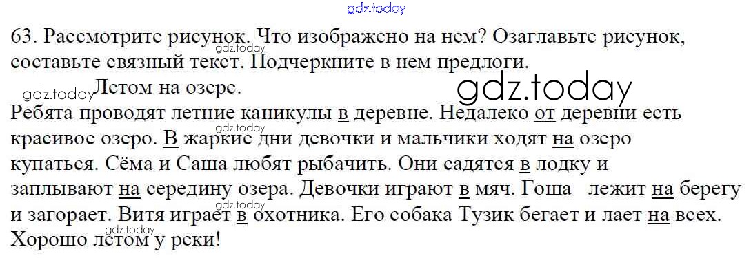 На страницах сайта gdz.today вы найдете учебный и вспомогательный материал, направленный на улучшения знаний школьной программы. ГДЗ - онлайн мир знаний Часть 1. Решение к упражнениям 63 Учебнику по Русскому языку для 5 класса Баранов, Ладыженская Просвещение, Просвещение 2016, 2019