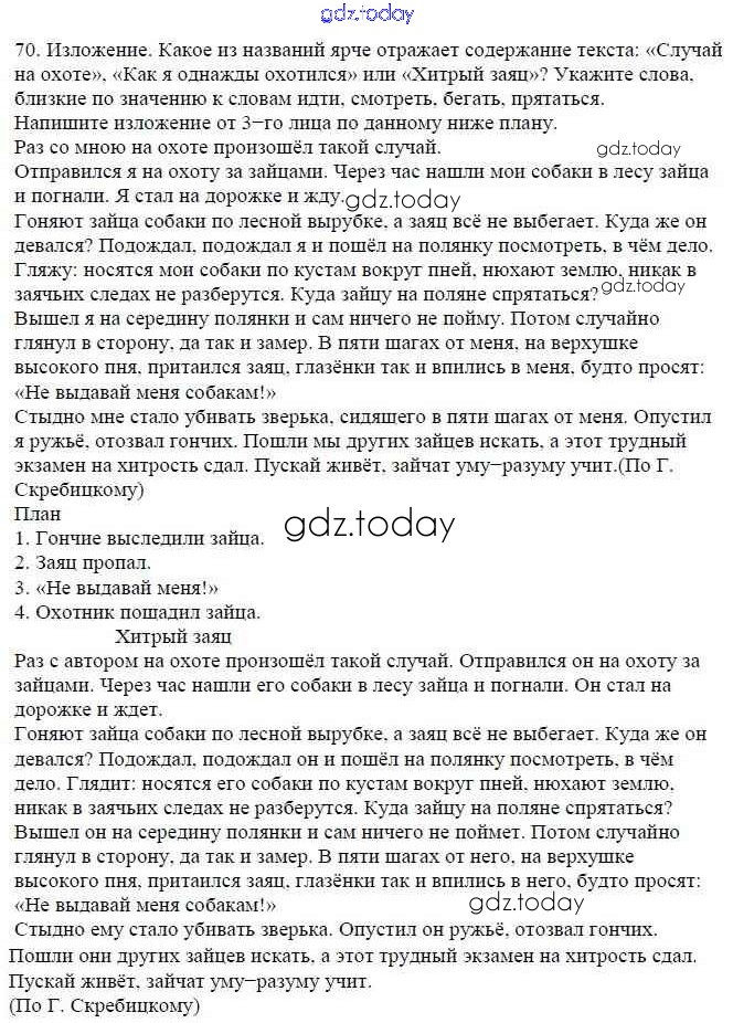 На страницах сайта gdz.today вы найдете учебный и вспомогательный материал, направленный на улучшения знаний школьной программы. ГДЗ - онлайн мир знаний Часть 1. Решение к упражнениям 70 Учебнику по Русскому языку для 5 класса Баранов, Ладыженская Просвещение, Просвещение 2016, 2019