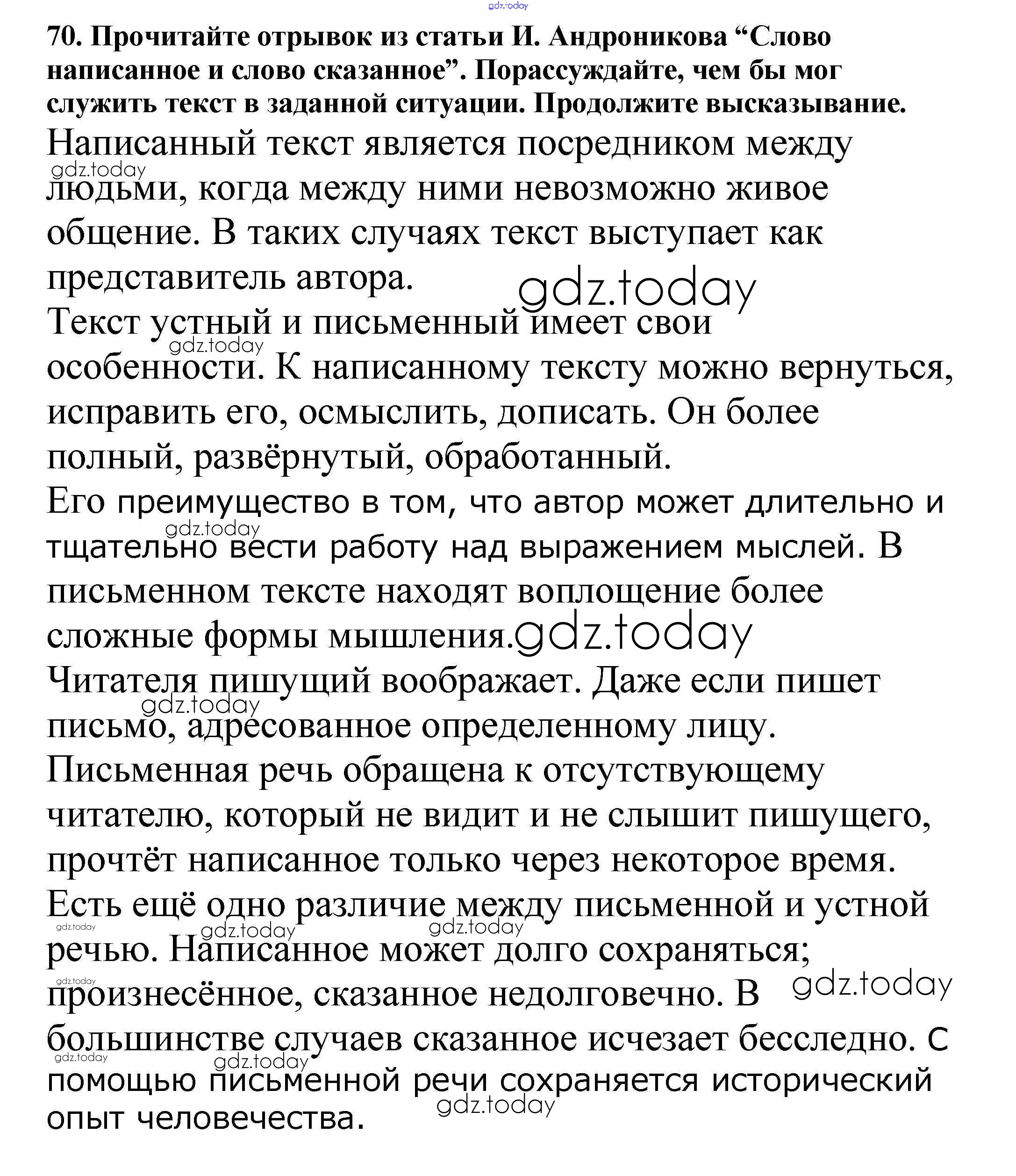 Ответы к Часть 1. Решение к упражнениям 70 Учебнику по Русскому языку для 5 класса Баранов, Ладыженская Просвещение, Просвещение 2016, 2019