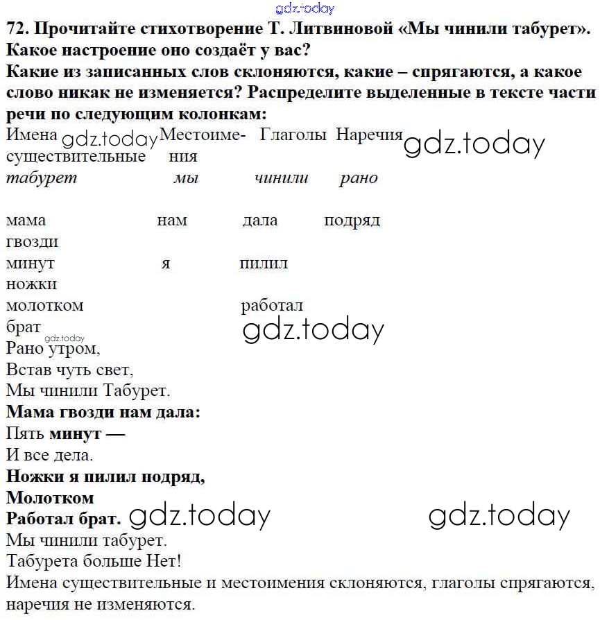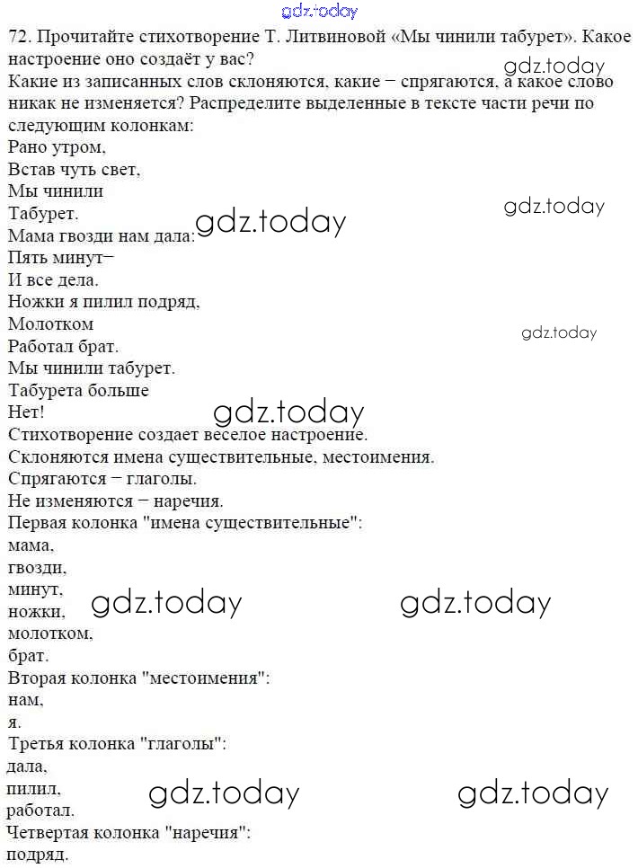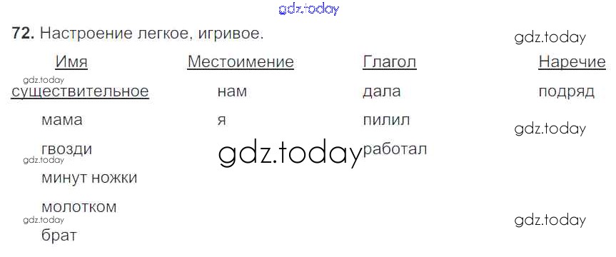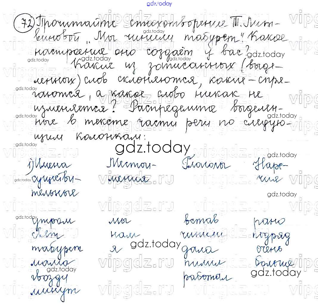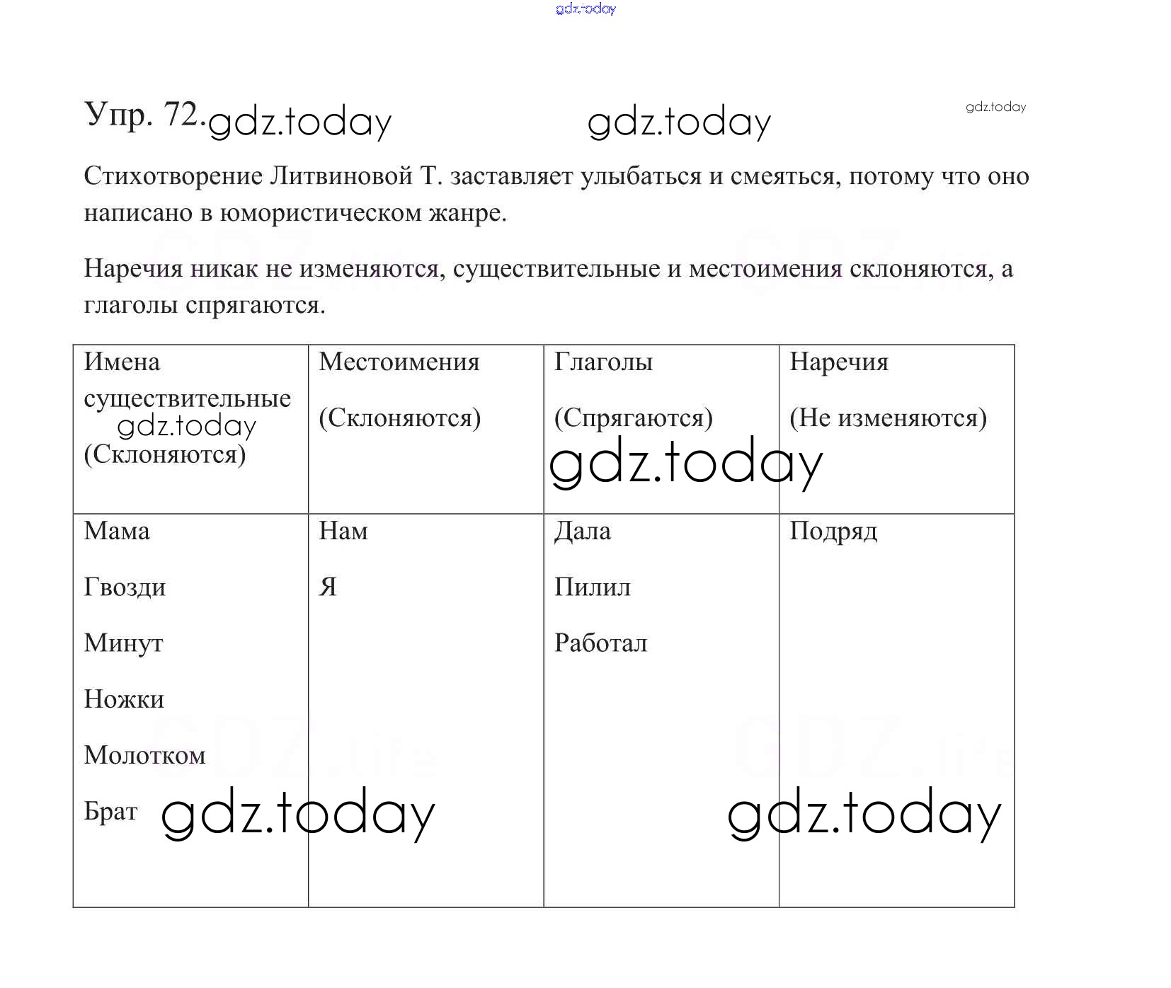На страницах сайта gdz.today вы найдете учебный и вспомогательный материал, направленный на улучшения знаний школьной программы. ГДЗ - онлайн мир знаний Часть 1. Решение к упражнениям 72 Учебнику по Русскому языку для 5 класса Баранов, Ладыженская Просвещение, Просвещение 2016, 2019