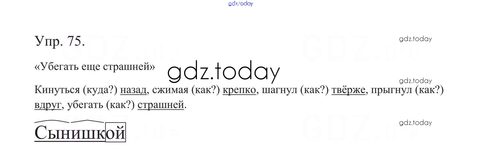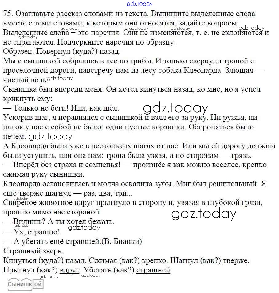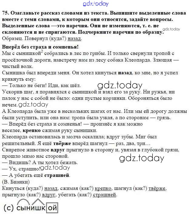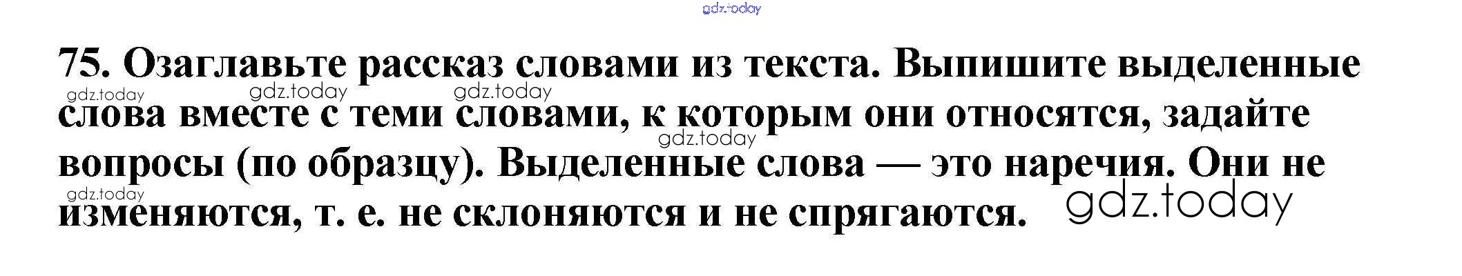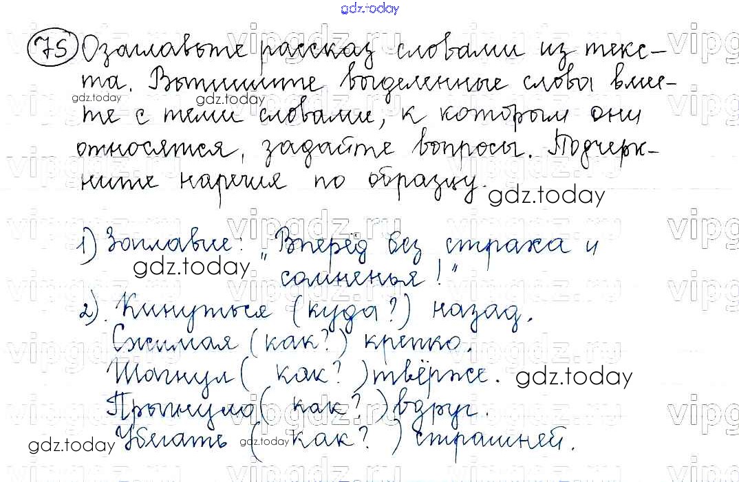На страницах сайта gdz.today вы найдете учебный и вспомогательный материал, направленный на улучшения знаний школьной программы. ГДЗ - онлайн мир знаний Часть 1. Решение к упражнениям 75 Учебнику по Русскому языку для 5 класса Баранов, Ладыженская Просвещение, Просвещение 2016, 2019