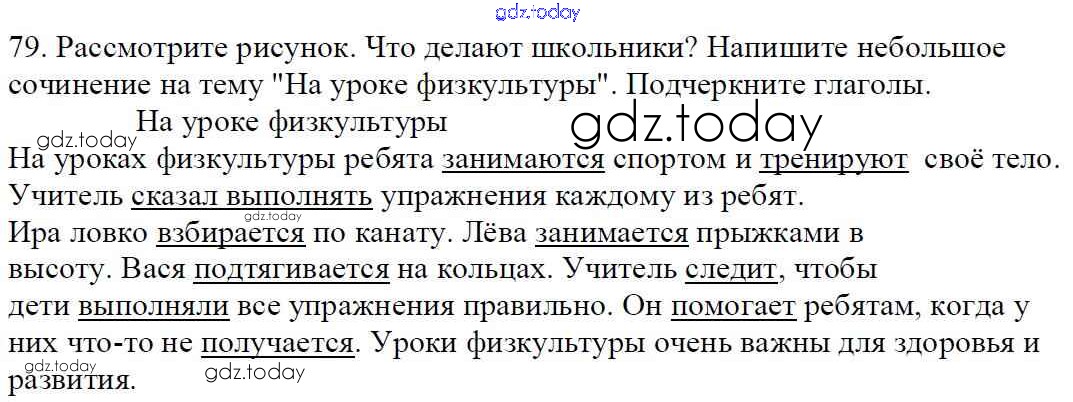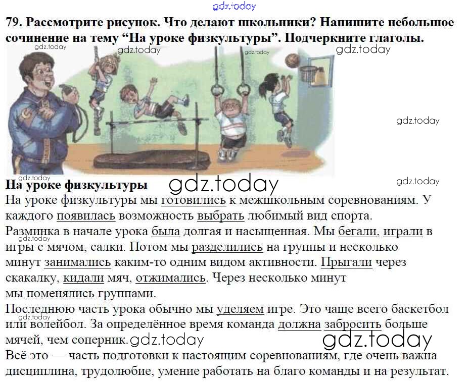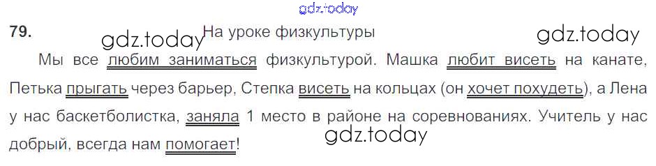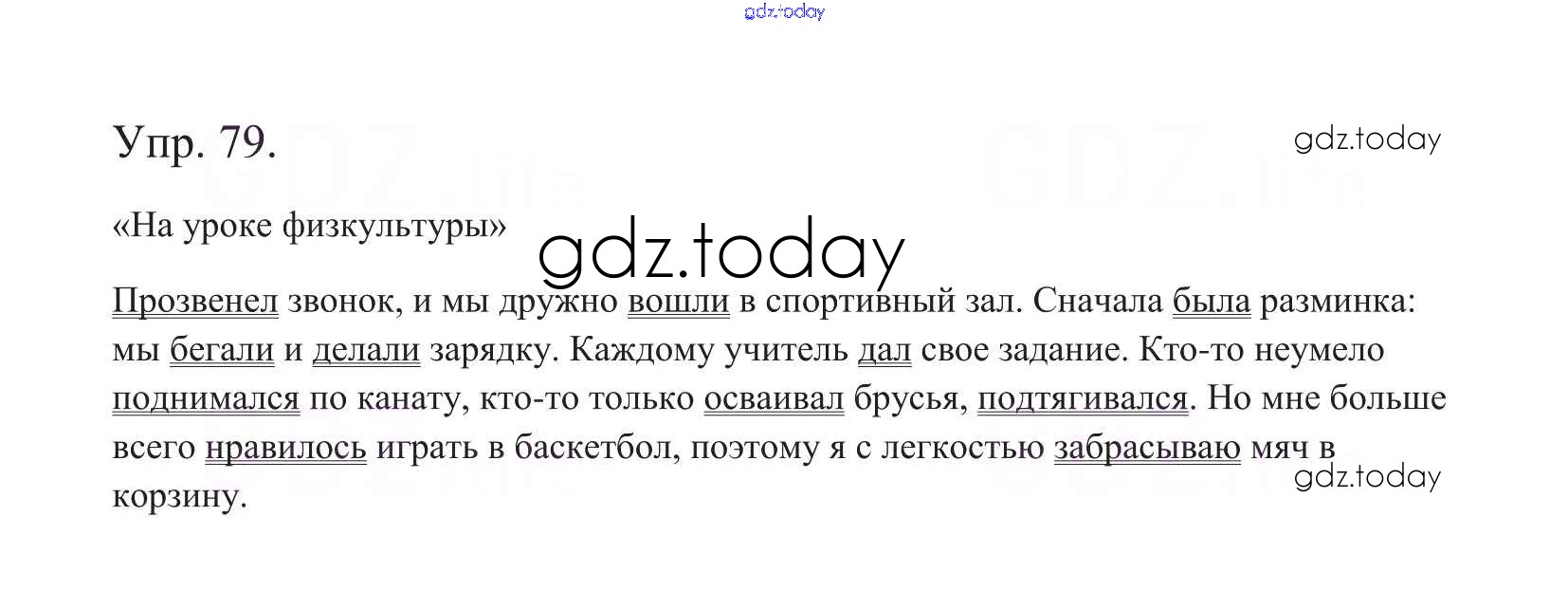 На страницах сайта gdz.today вы найдете учебный и вспомогательный материал, направленный на улучшения знаний школьной программы. ГДЗ - онлайн мир знаний Часть 1. Решение к упражнениям 79 Учебнику по Русскому языку для 5 класса Баранов, Ладыженская Просвещение, Просвещение 2016, 2019