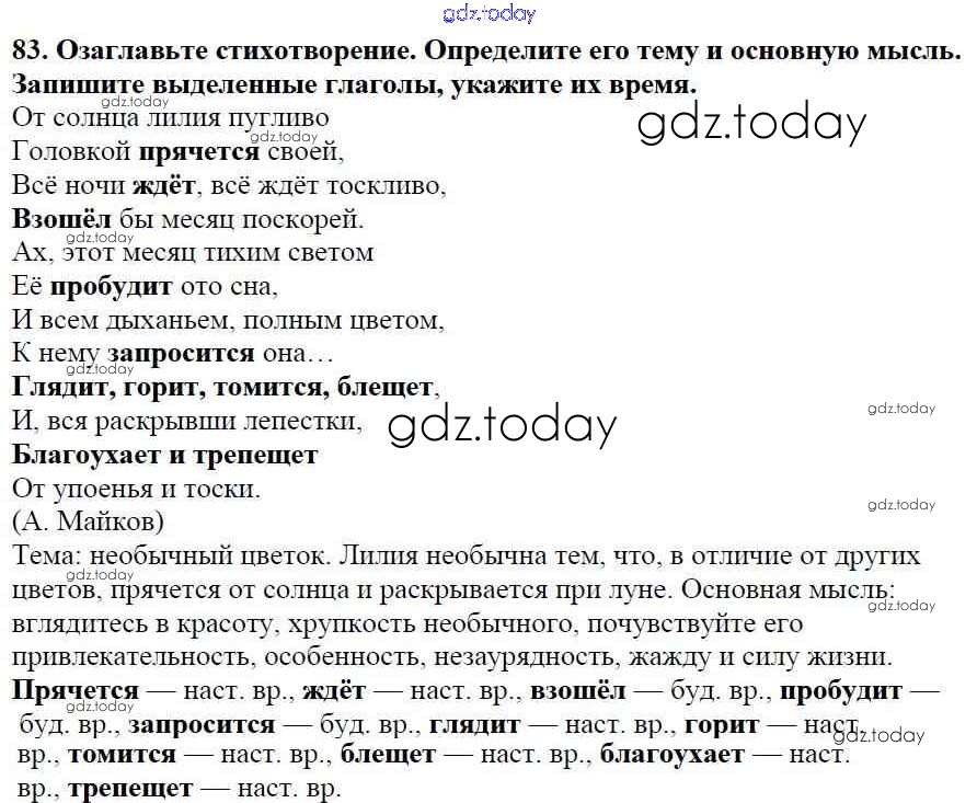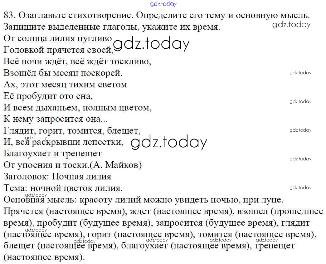 Ответы к Часть 1. Решение к упражнениям 83 Учебнику по Русскому языку для 5 класса Баранов, Ладыженская Просвещение, Просвещение 2016, 2019