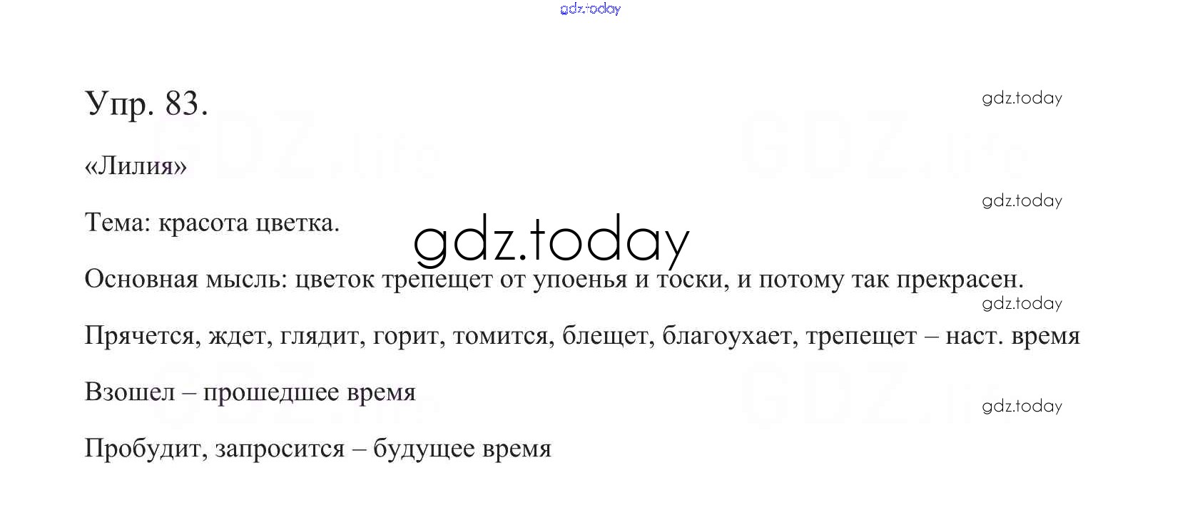 На страницах сайта gdz.today вы найдете учебный и вспомогательный материал, направленный на улучшения знаний школьной программы. ГДЗ - онлайн мир знаний Часть 1. Решение к упражнениям 83 Учебнику по Русскому языку для 5 класса Баранов, Ладыженская Просвещение, Просвещение 2016, 2019