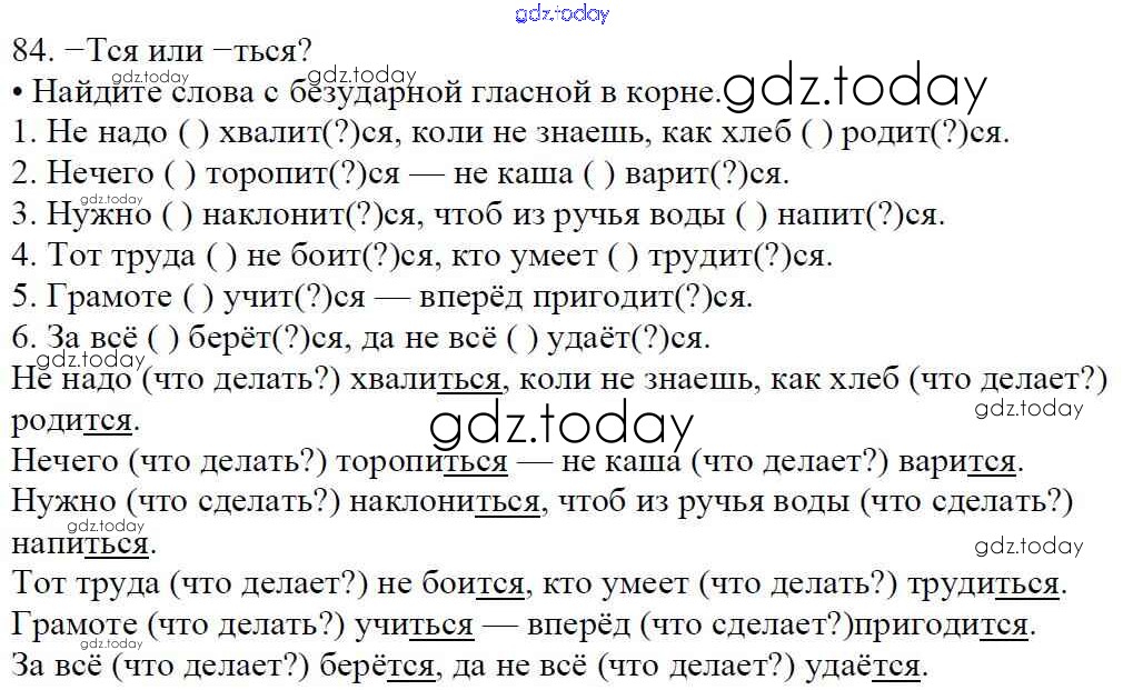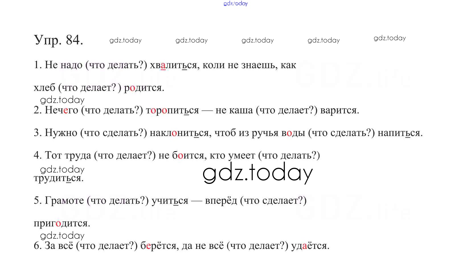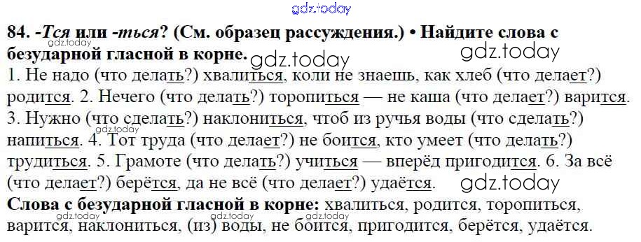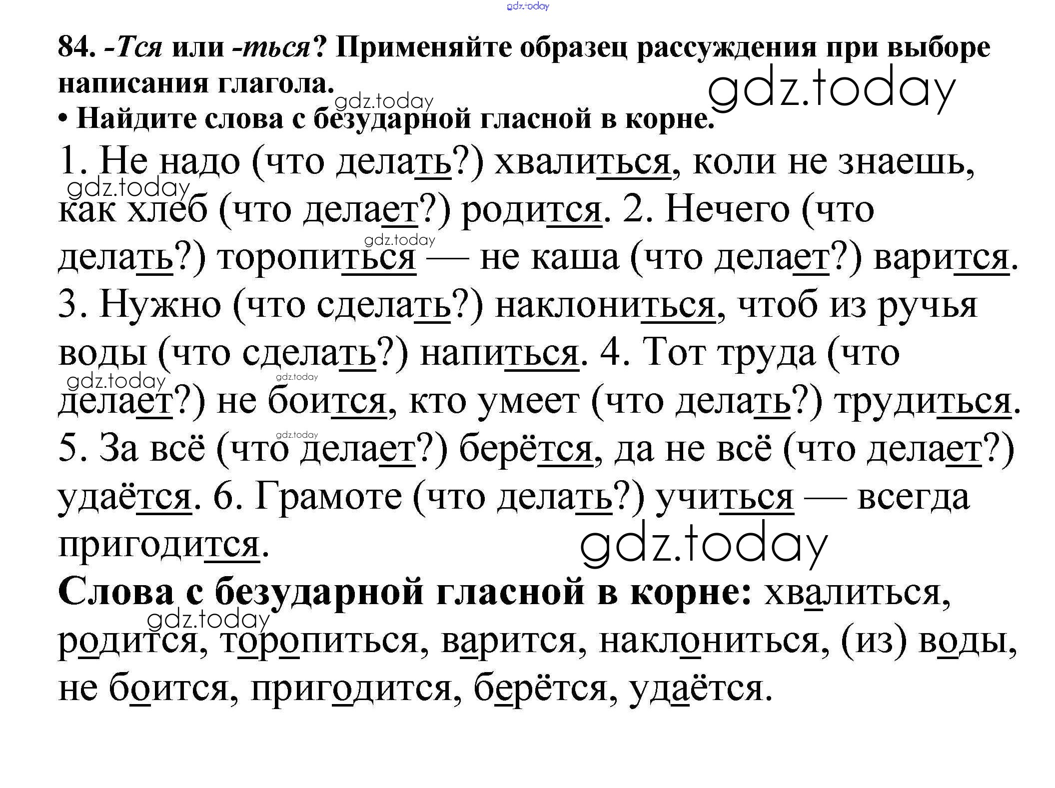 На страницах сайта gdz.today вы найдете учебный и вспомогательный материал, направленный на улучшения знаний школьной программы. ГДЗ - онлайн мир знаний Часть 1. Решение к упражнениям 84 Учебнику по Русскому языку для 5 класса Баранов, Ладыженская Просвещение, Просвещение 2016, 2019