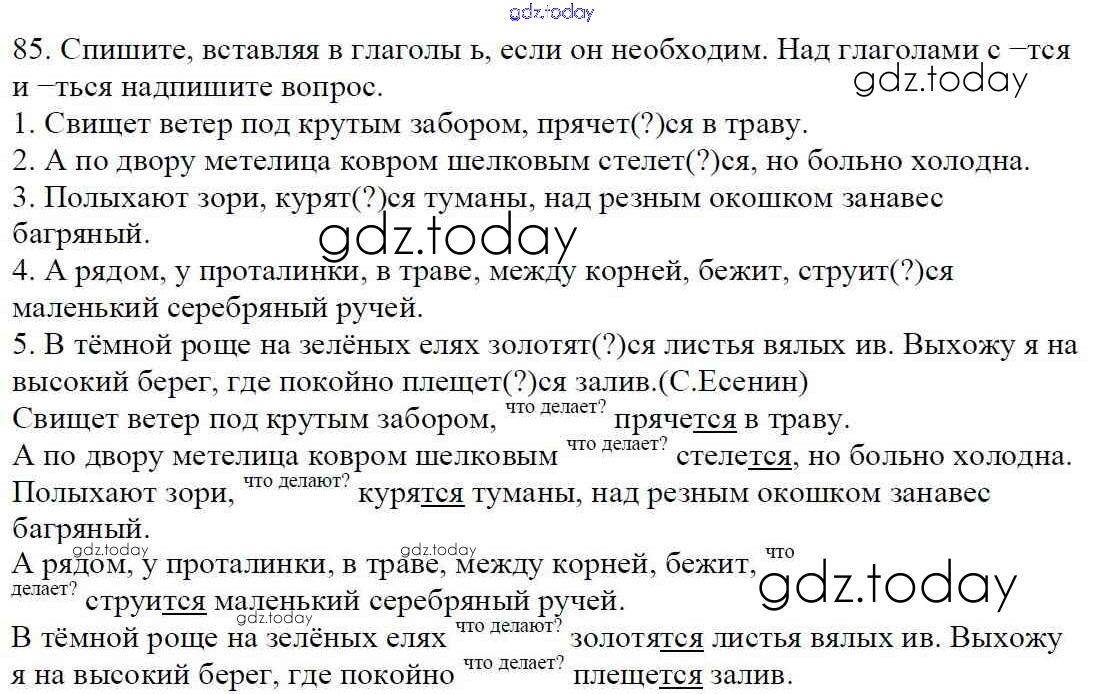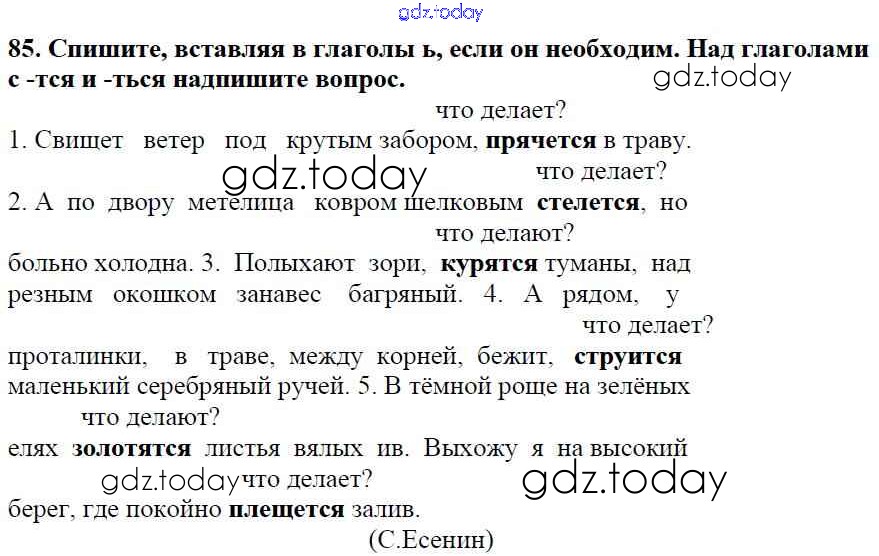 На страницах сайта gdz.today вы найдете учебный и вспомогательный материал, направленный на улучшения знаний школьной программы. ГДЗ - онлайн мир знаний Часть 1. Решение к упражнениям 85 Учебнику по Русскому языку для 5 класса Баранов, Ладыженская Просвещение, Просвещение 2016, 2019